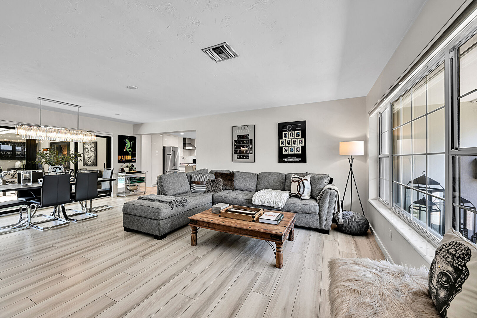 Baseboards Wall, Drywall, Natural Light, Notable Chandelier, Recessed Lighting, Sunroom, Vent, Wood Finish Floor, Natural Light, Wood Finish Floor