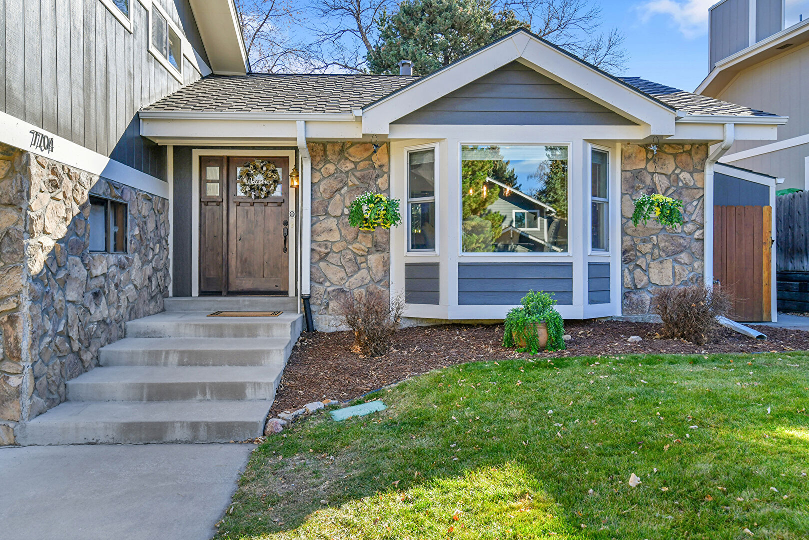 Built In Garage, Downspout, Driveway, Fence, Lawn, Shingle Roof, Stone Siding, Stoop, Vertical Siding, Built In Garage, Stone Siding