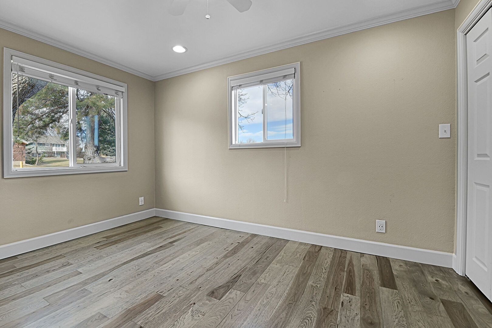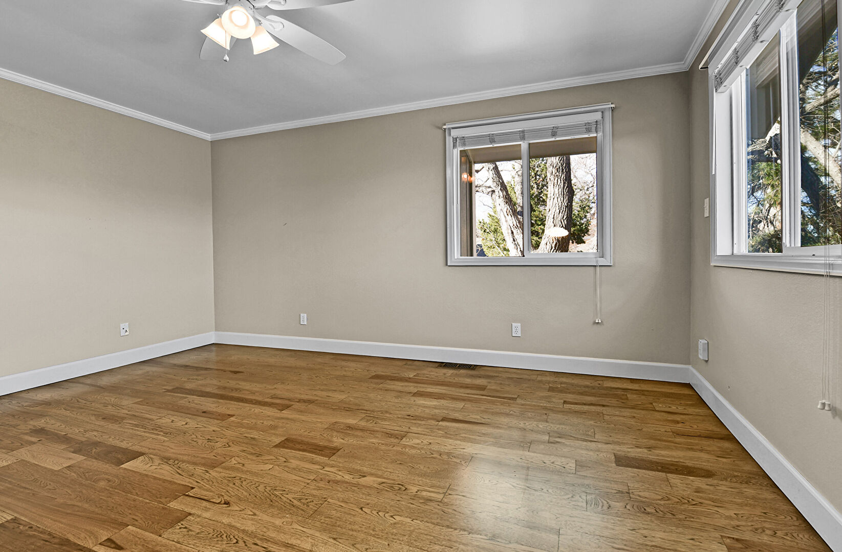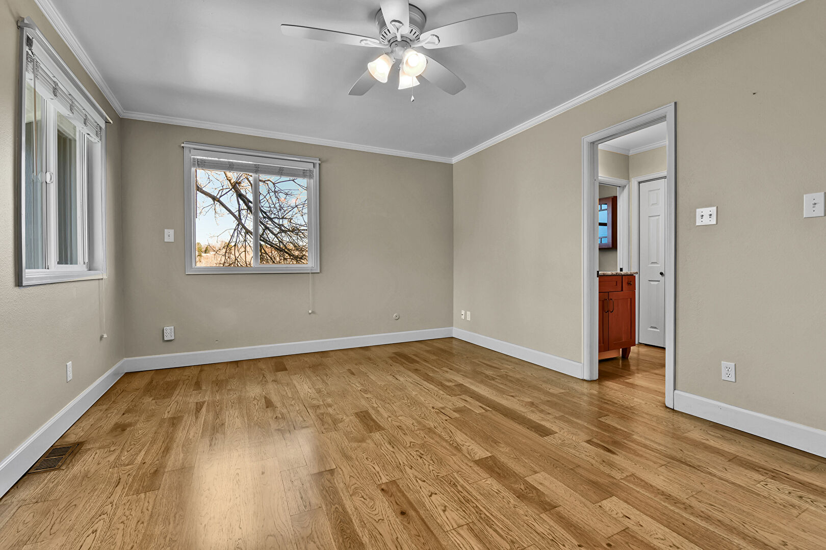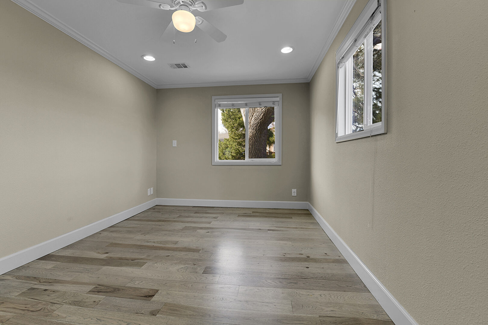 Baseboards Wall, Ceiling Fan, Closet, Crown Molding, Drywall, Natural Light, Smoke Carbon Monoxide Detector, Vent, Wood Finish Floor, Ceiling Fan, Crown Molding, Wood Finish Floor