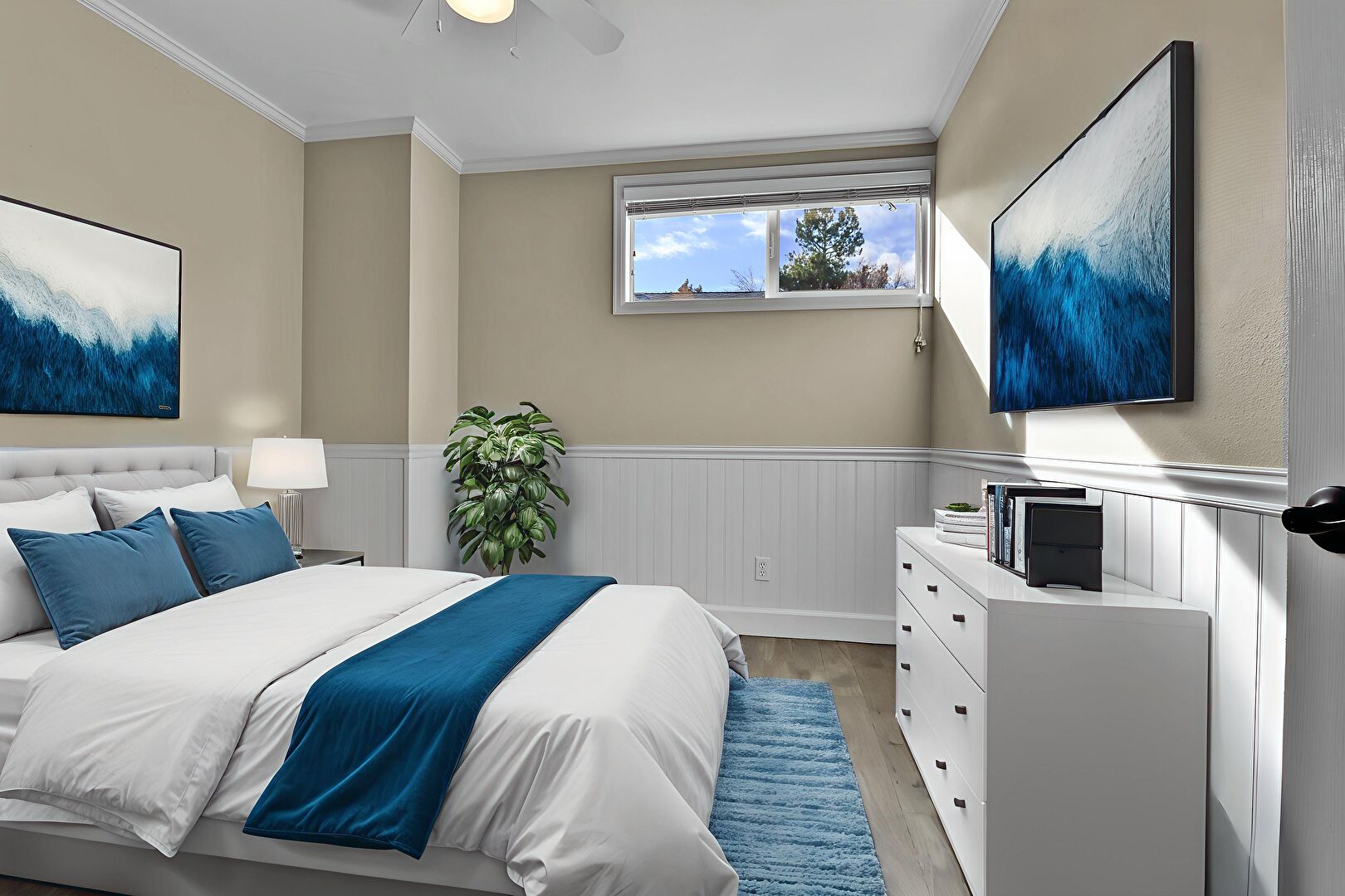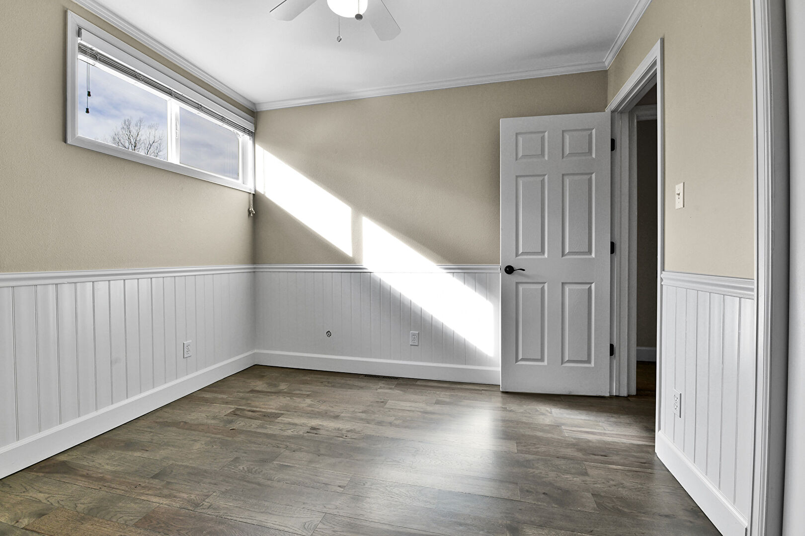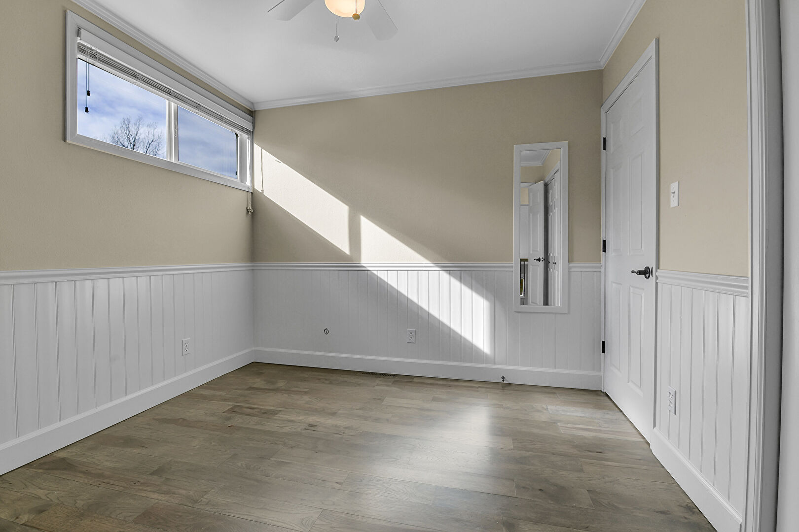 Baseboards Wall, Ceiling Fan, Closet, Crown Molding, Drywall, Natural Light, Smoke Carbon Monoxide Detector, Vent, Wainscot Wall, Wood Finish Floor, Closet, Crown Molding, Drywall, Wood Finish Floor