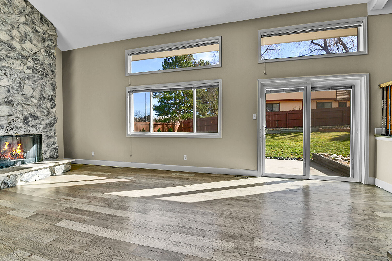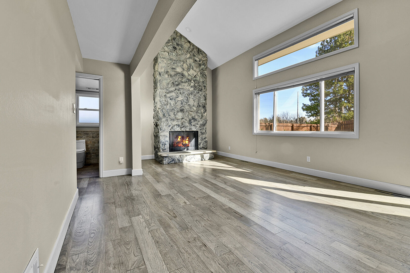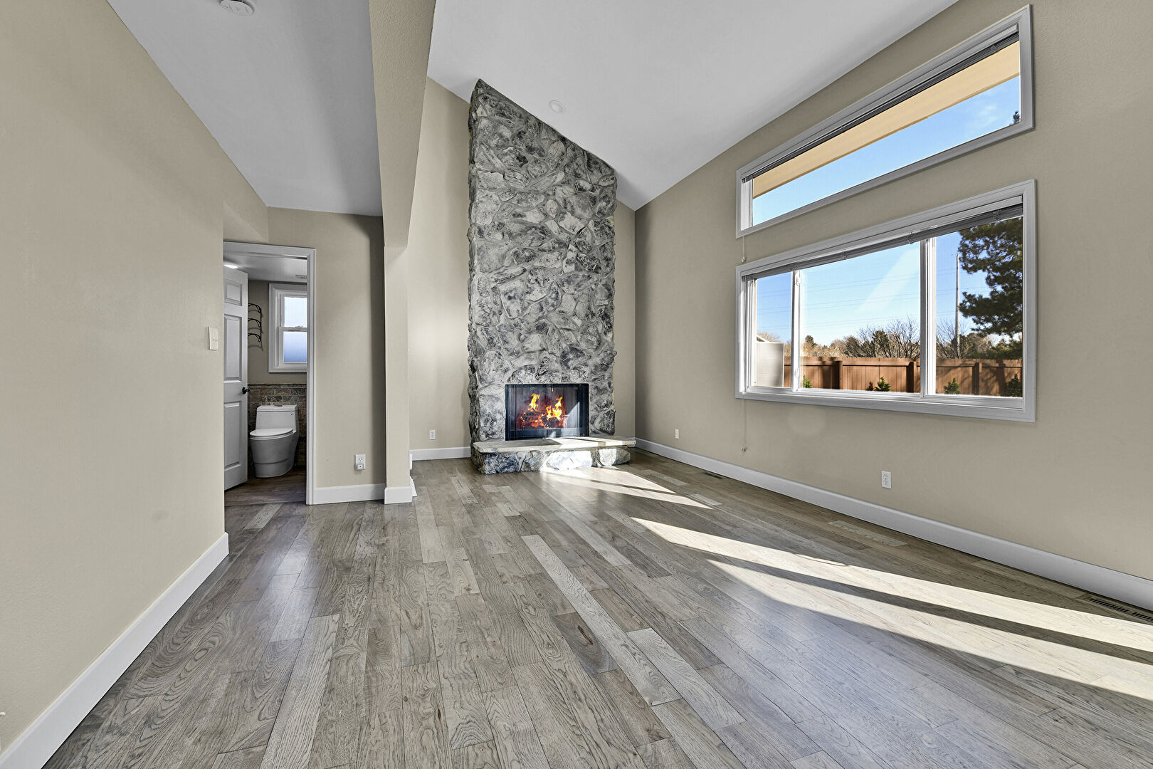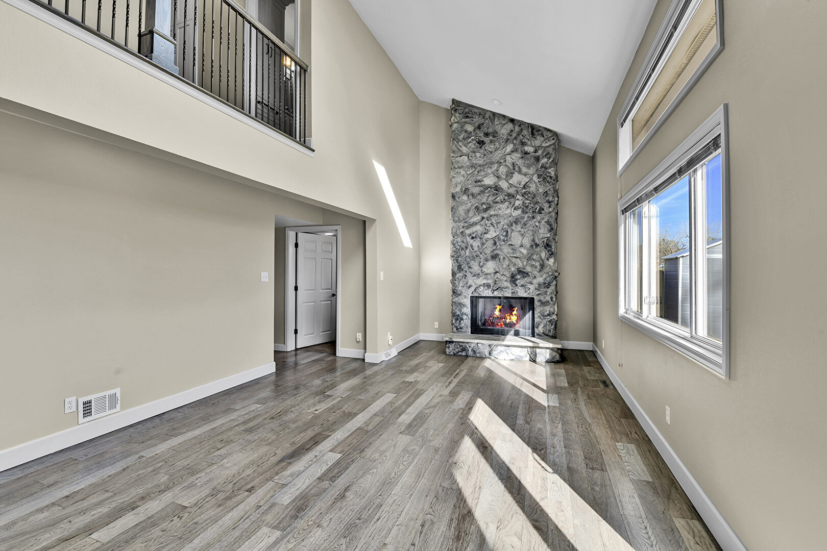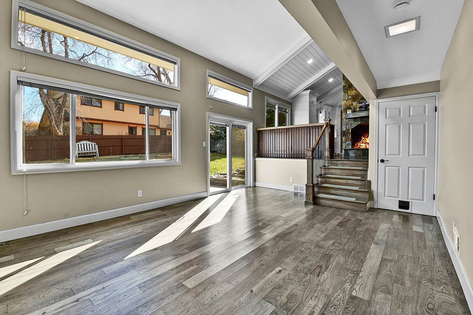 Baseboards Wall, Beamed Ceiling, Drywall, Fireplace, High Ceiling, Natural Light, Recessed Lighting, Skylight, Smoke Carbon Monoxide Detector, Stairs, Vaulted Ceiling, Vent, Wood Finish Floor, Baseboards Wall, Fireplace, High Ceiling, Natural Light, Stairs, Vaulted Ceiling, Vent, Wood Finish Floor