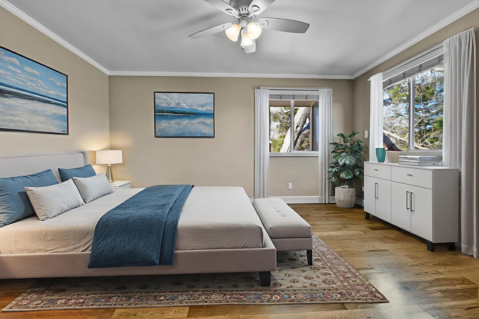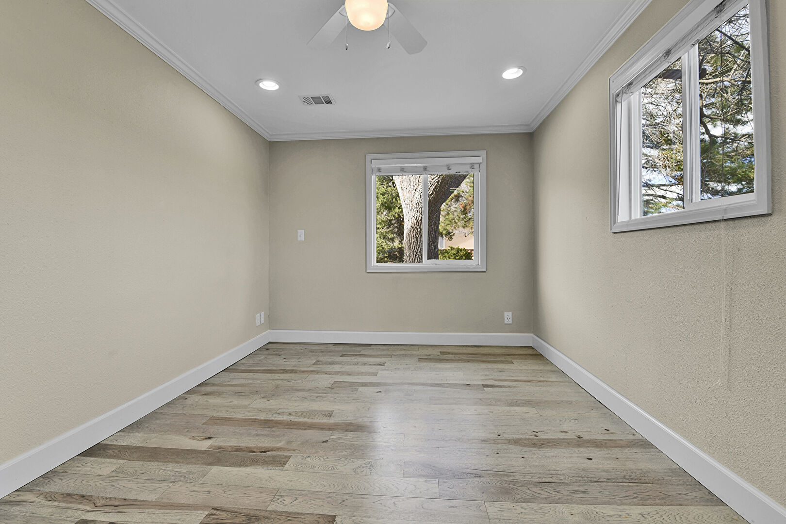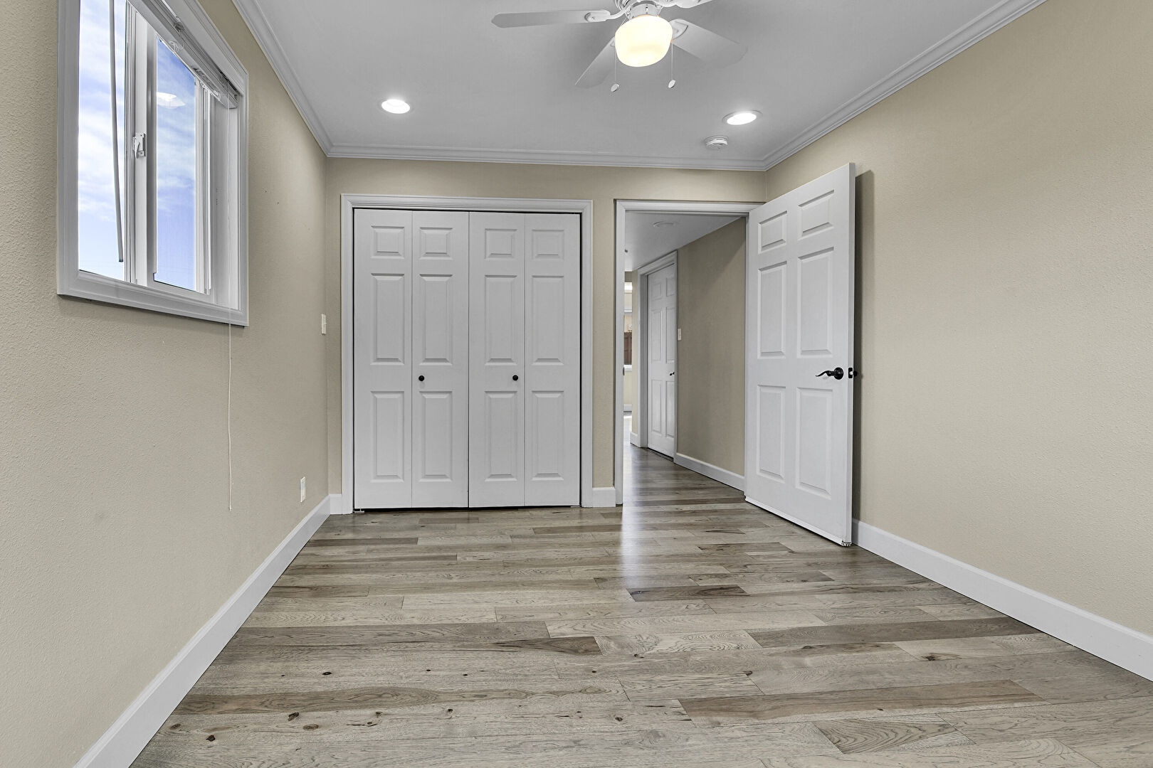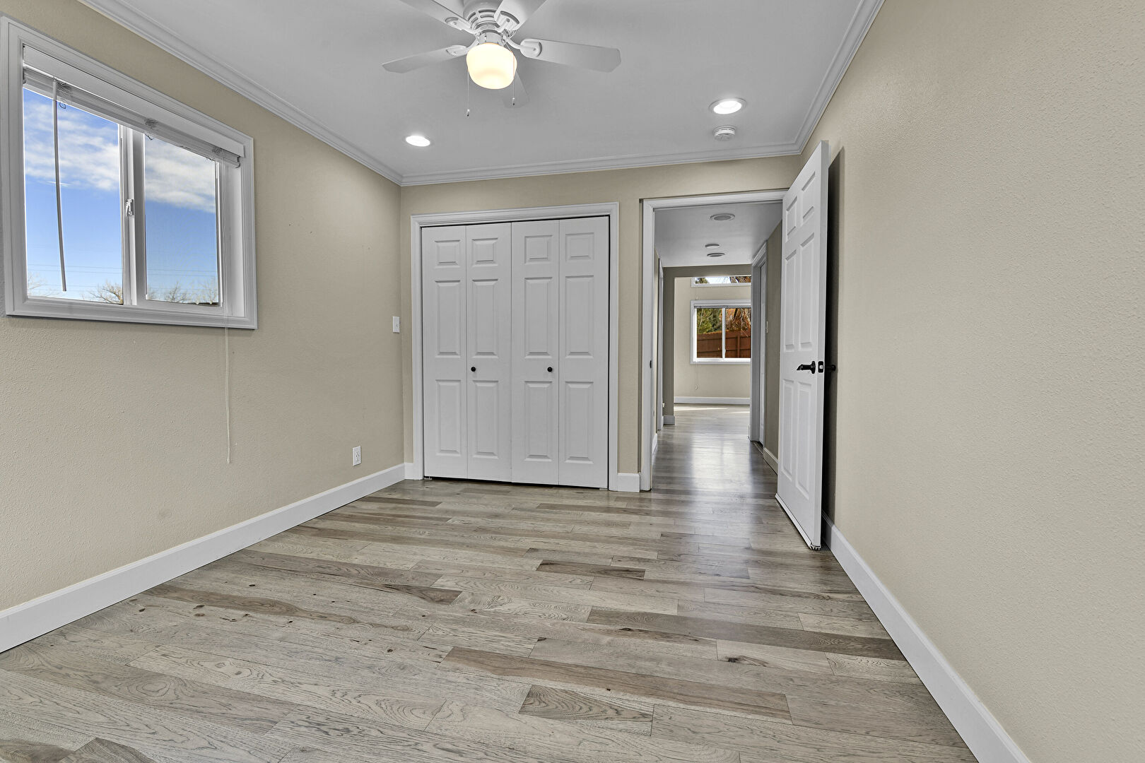 Baseboards Wall, Ceiling Fan, Closet, Crown Molding, Drywall, Natural Light, Recessed Lighting, Textured Wall, Vent, Wood Finish Floor, Baseboards Wall, Ceiling Fan, Crown Molding, Drywall, Natural Light, Vent