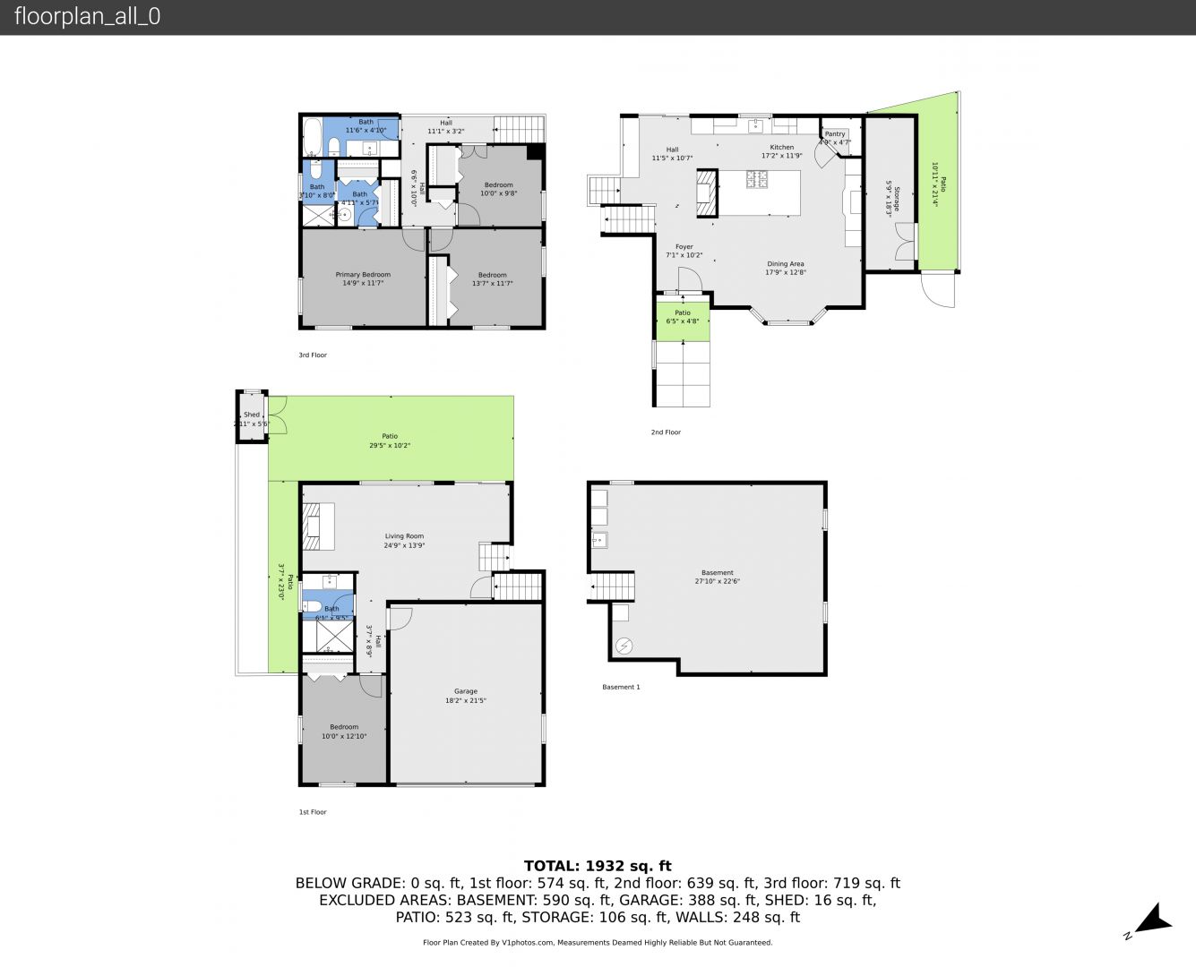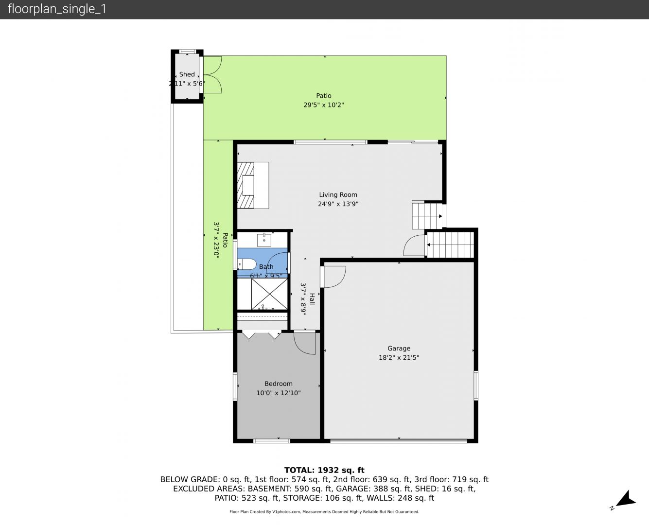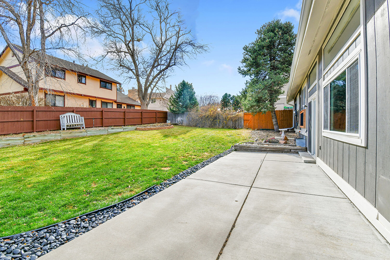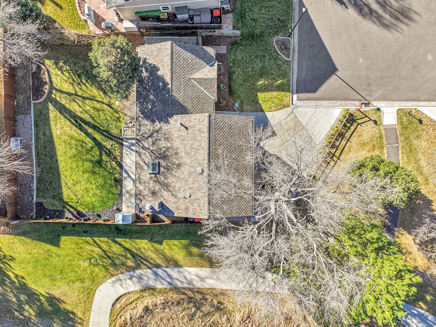 Chimney, Concrete Foundation, Downspout, Fence, Gutters, Lawn, Outdoor Structure, Patio, Satellite Dish, Shed, Shingle Roof, Vertical Siding