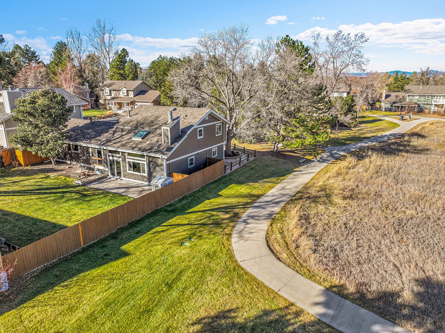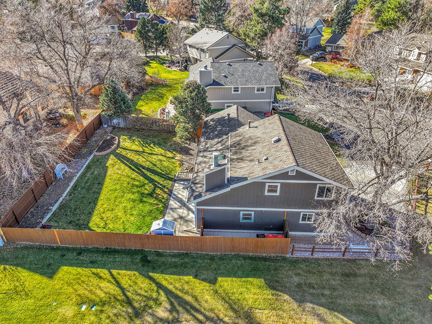 Chimney, Fence, Lawn, Outdoor Structure, Patio, Residential View, Satellite Dish, Shed, Shingle Roof, Vertical Siding, Fence, Lawn, Patio, Sunroom