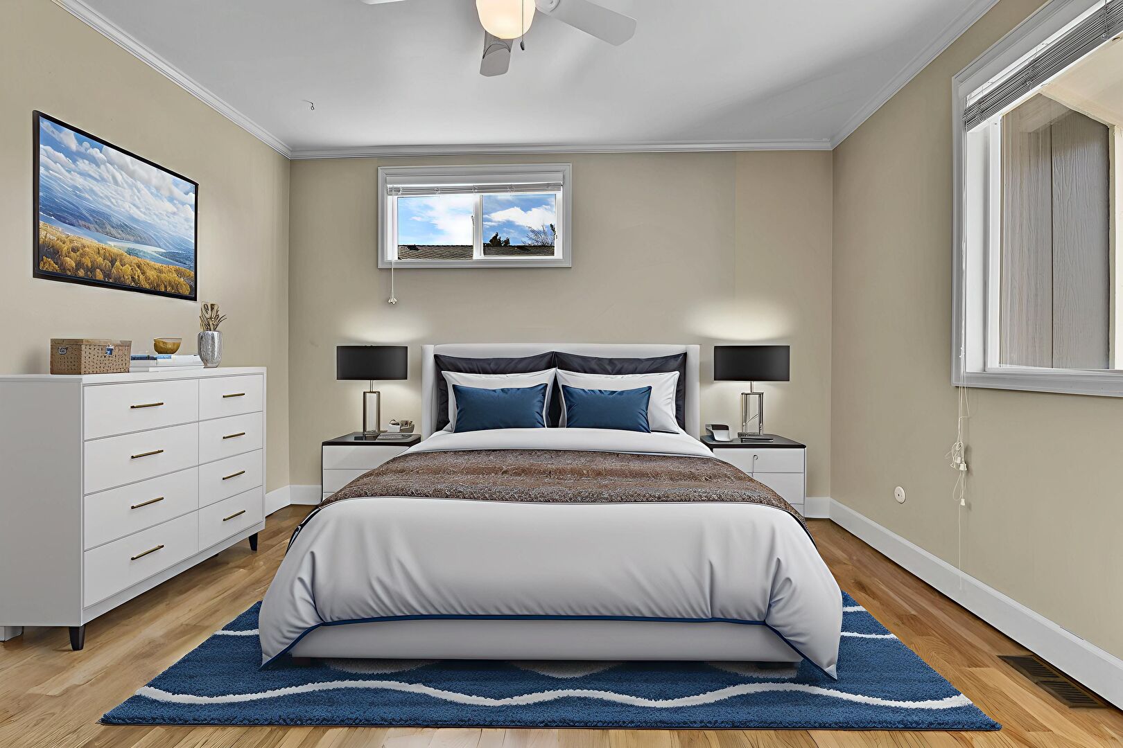 Baseboards Wall, Ceiling Fan, Closet, Crown Molding, Drywall, Natural Light, Smoke Carbon Monoxide Detector, Wood Finish Floor, Ceiling Fan, Closet, Drywall, Smoke Carbon Monoxide Detector