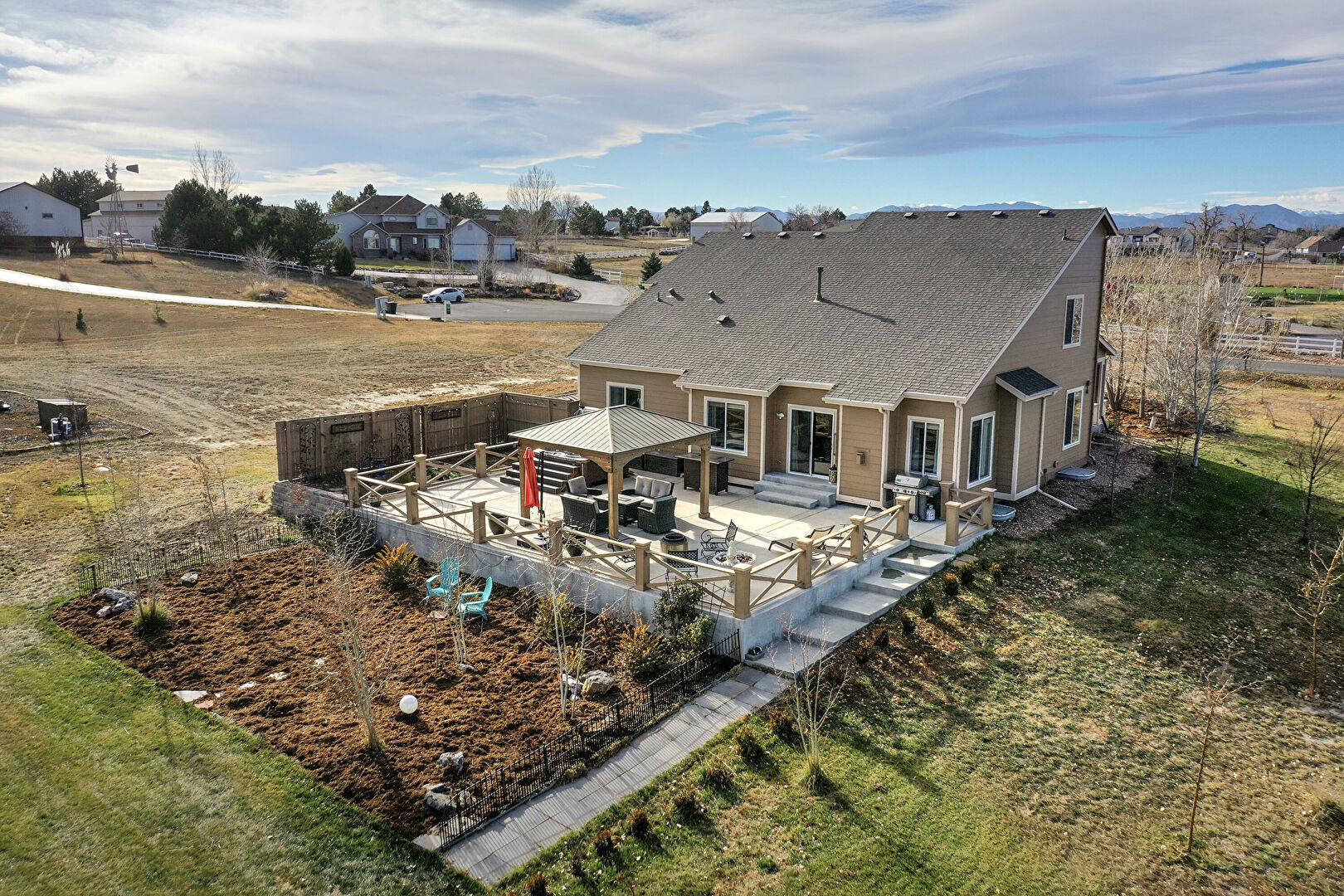 Deck, Downspout, Driveway, Fence, Fire Pit, Garage, Gazebo, Grill, Gutters, Horizontal Siding, Hot Tub, Lawn, Mountain View, Outdoor Dining Area, Outdoor Living Space, Patio, Porch, Residential View, Shingle Roof, Stone Siding, Driveway, Entry Steps, Horizontal Siding, Mountain View, Outdoor Dining Area, Patio, Residential View, Rural View