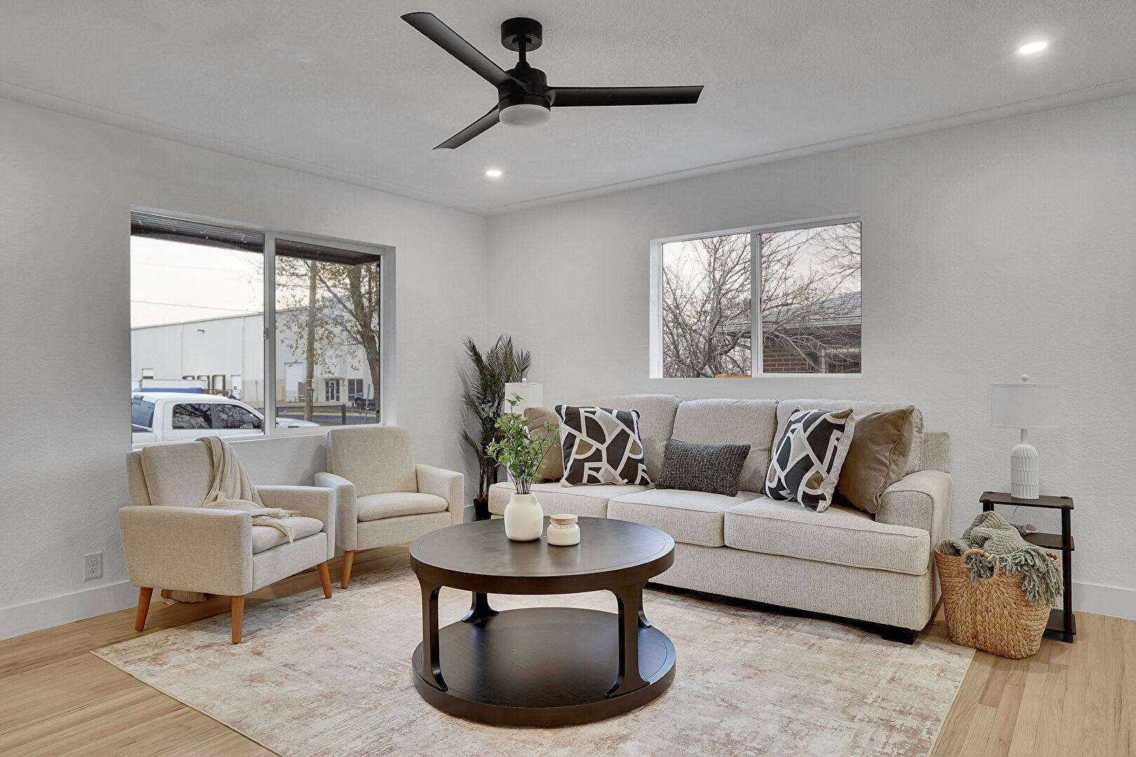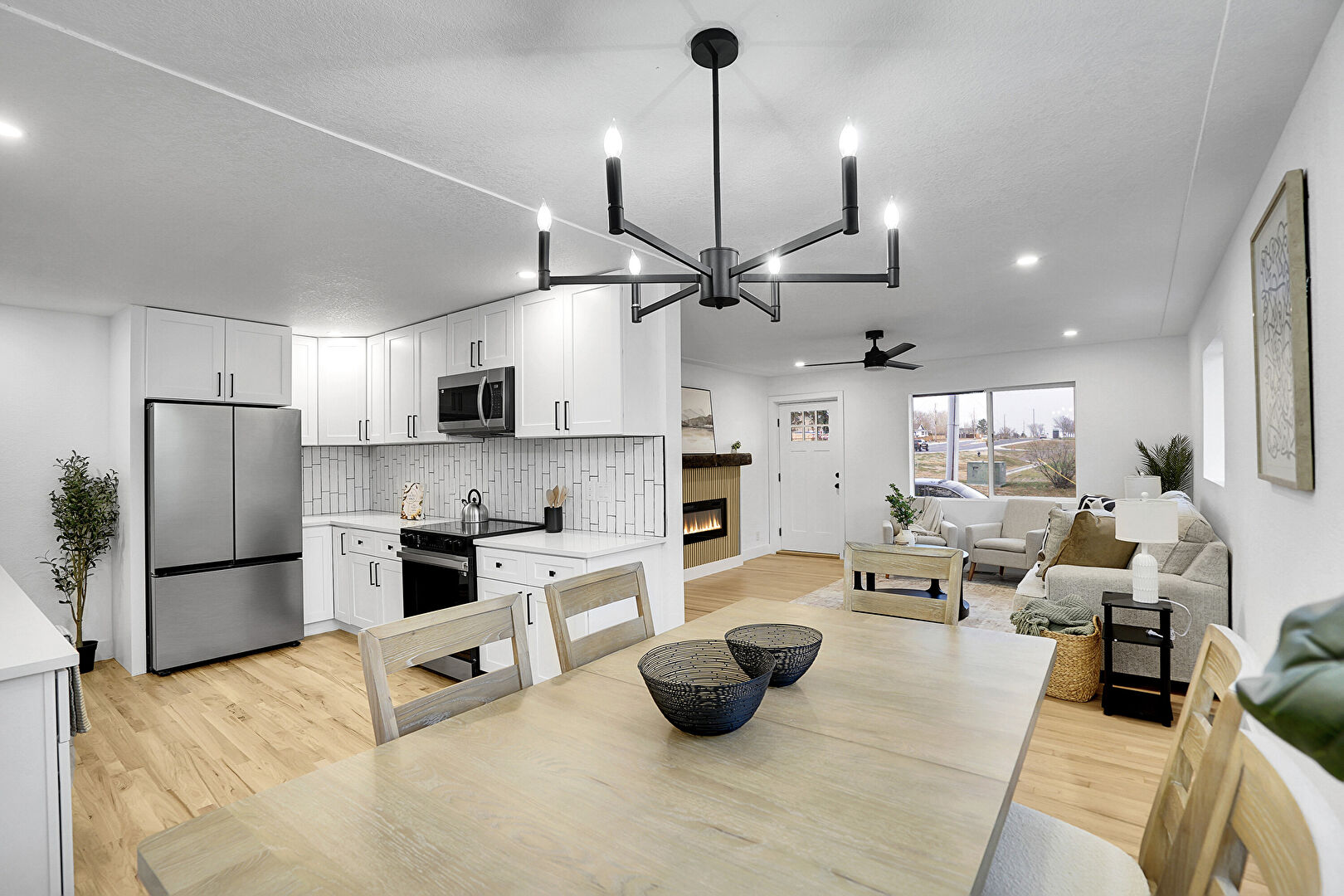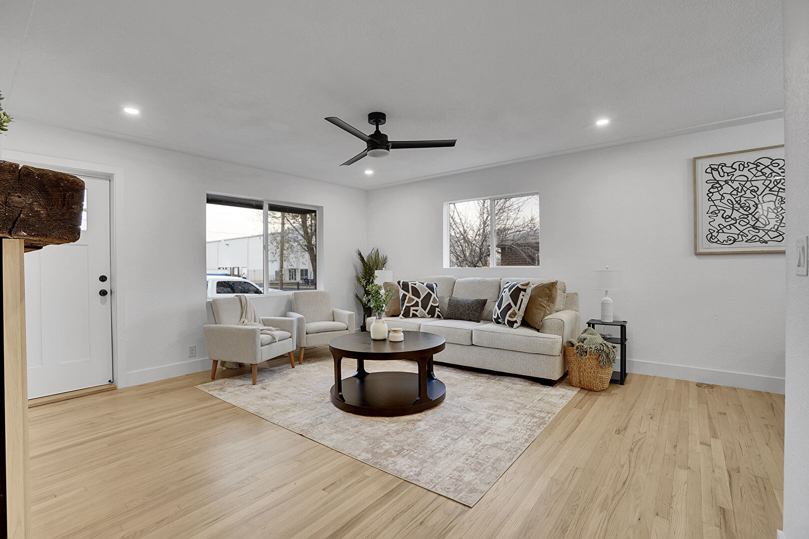 Baseboards Wall, Ceiling Fan, Drywall, Fireplace, Natural Light, Notable Chandelier, Recessed Lighting, Wood Finish Floor, Baseboards Wall, Natural Light, Recessed Lighting, Vent, Wood Finish Floor