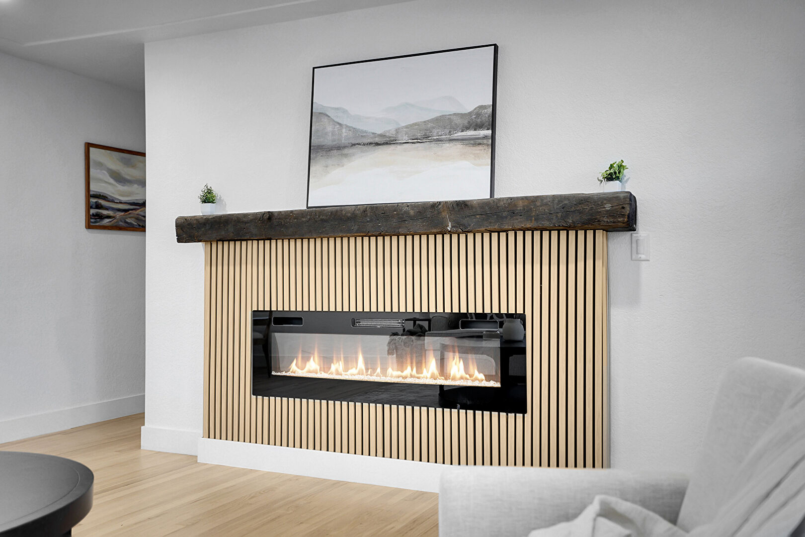 Baseboards Wall, Concrete Block Siding, Drywall, Fireplace, Wood Finish Floor, Brick Siding, Drywall, Fireplace, Recessed Lighting