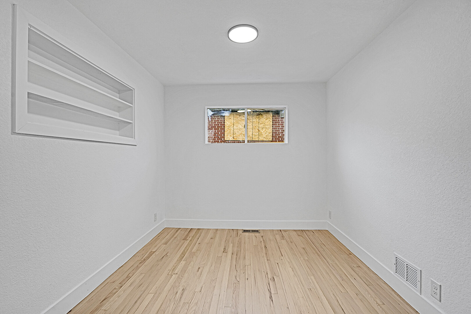 Baseboards Wall, Drywall, Natural Light, Vent, Wood Finish Floor, Built In Shelves, Textured Wall, Wood Finish Floor
