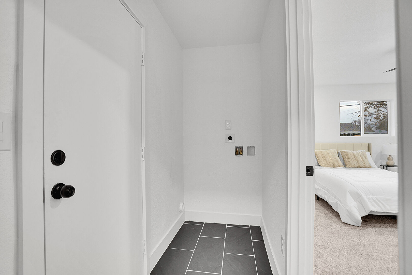 Baseboards Wall, Carpet, Drywall, Electric Dryer Hookup, Laundry, Tile Floor, Natural Light