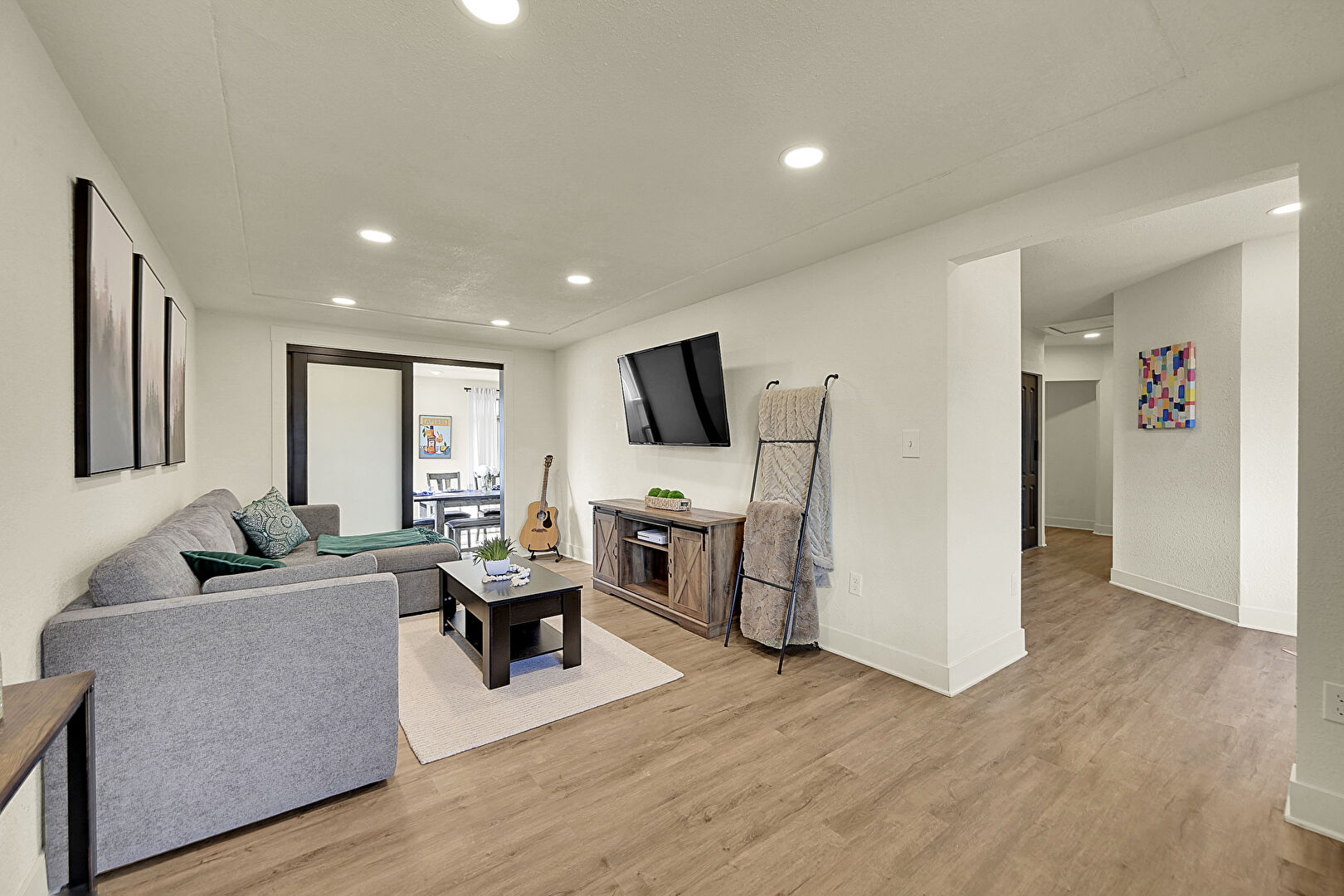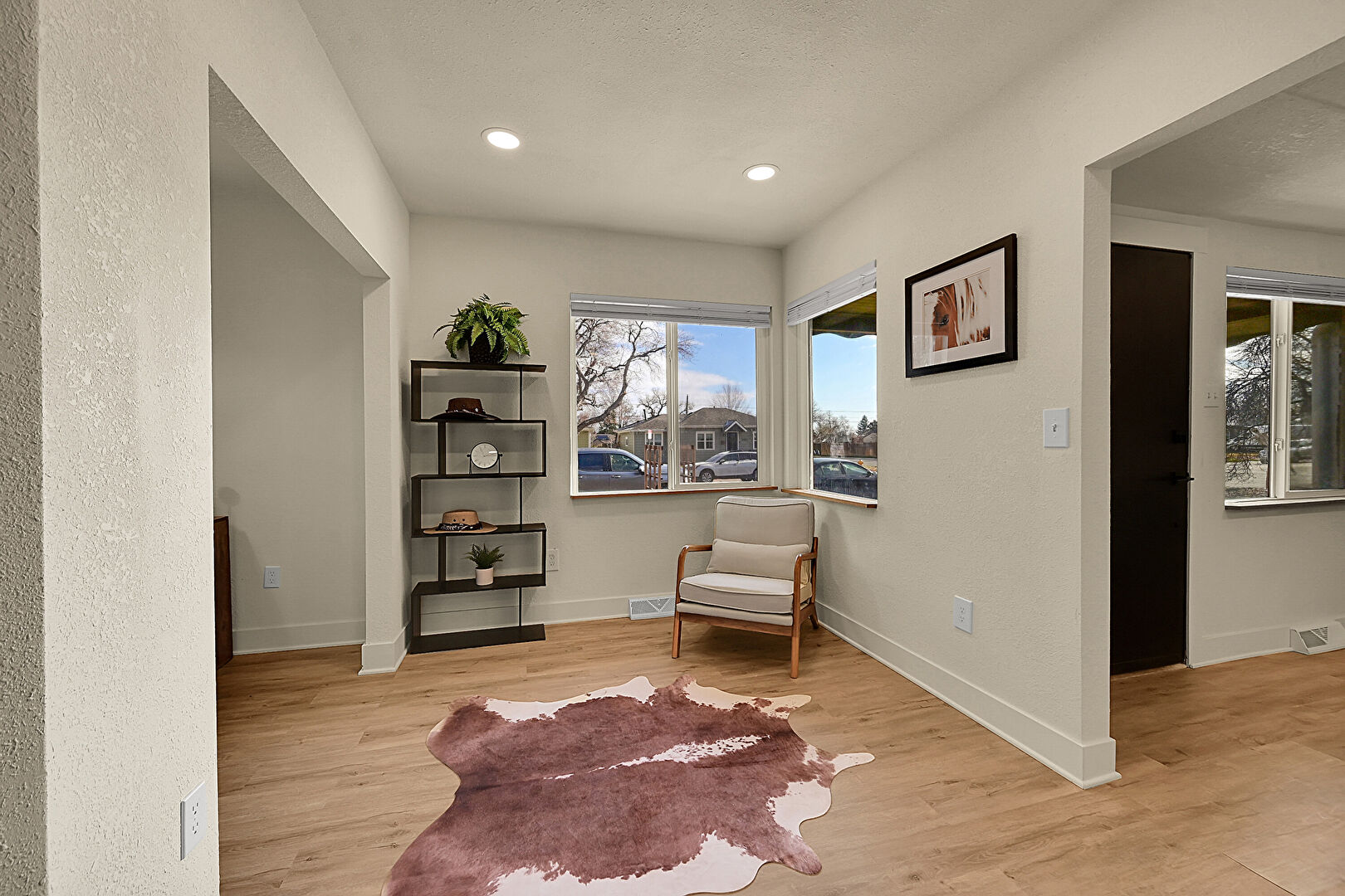Baseboards Wall, Natural Light, Recessed Lighting, Textured Ceiling, Textured Wall, Vent, Wood Finish Floor