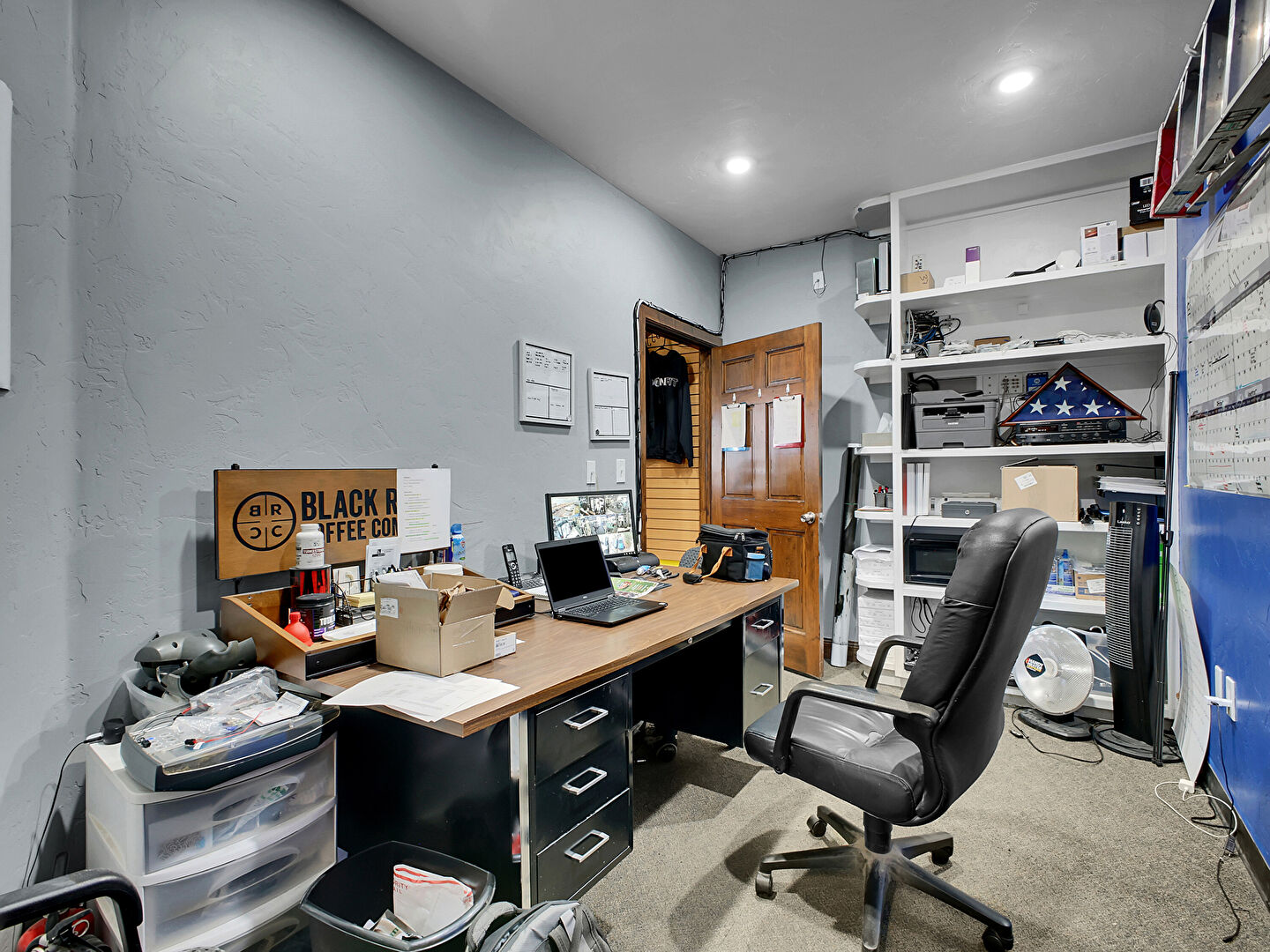 Carpet, Office Area, Textured Wall, Recessed Lighting