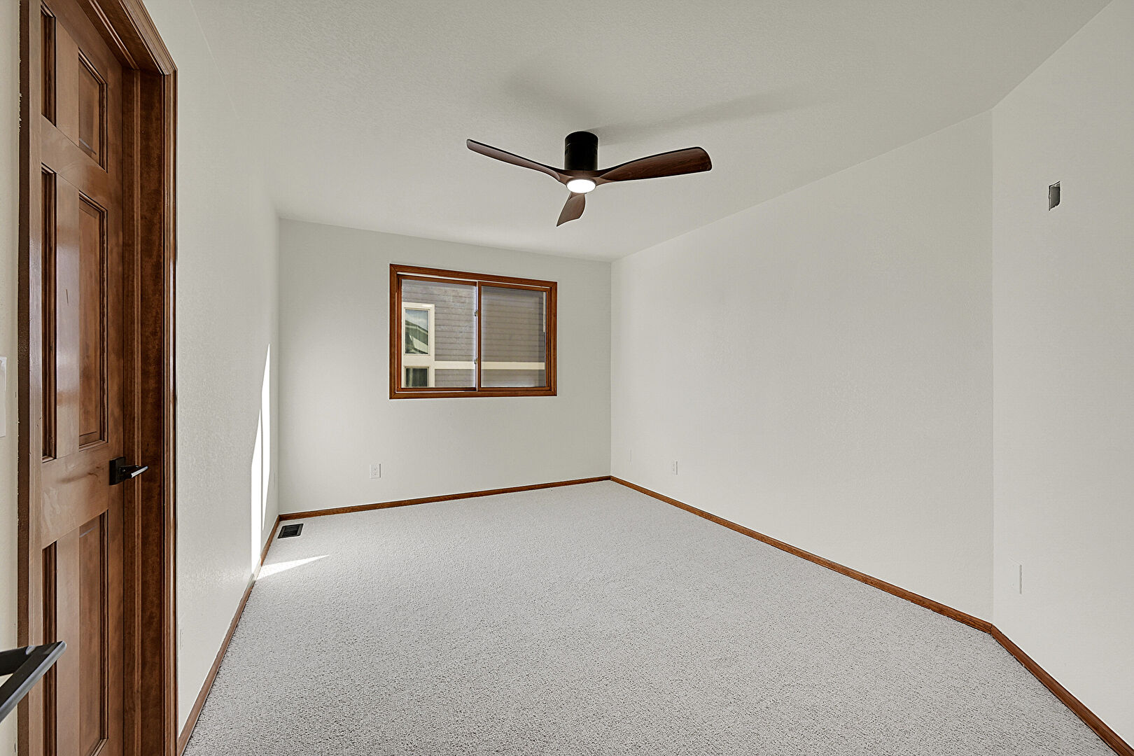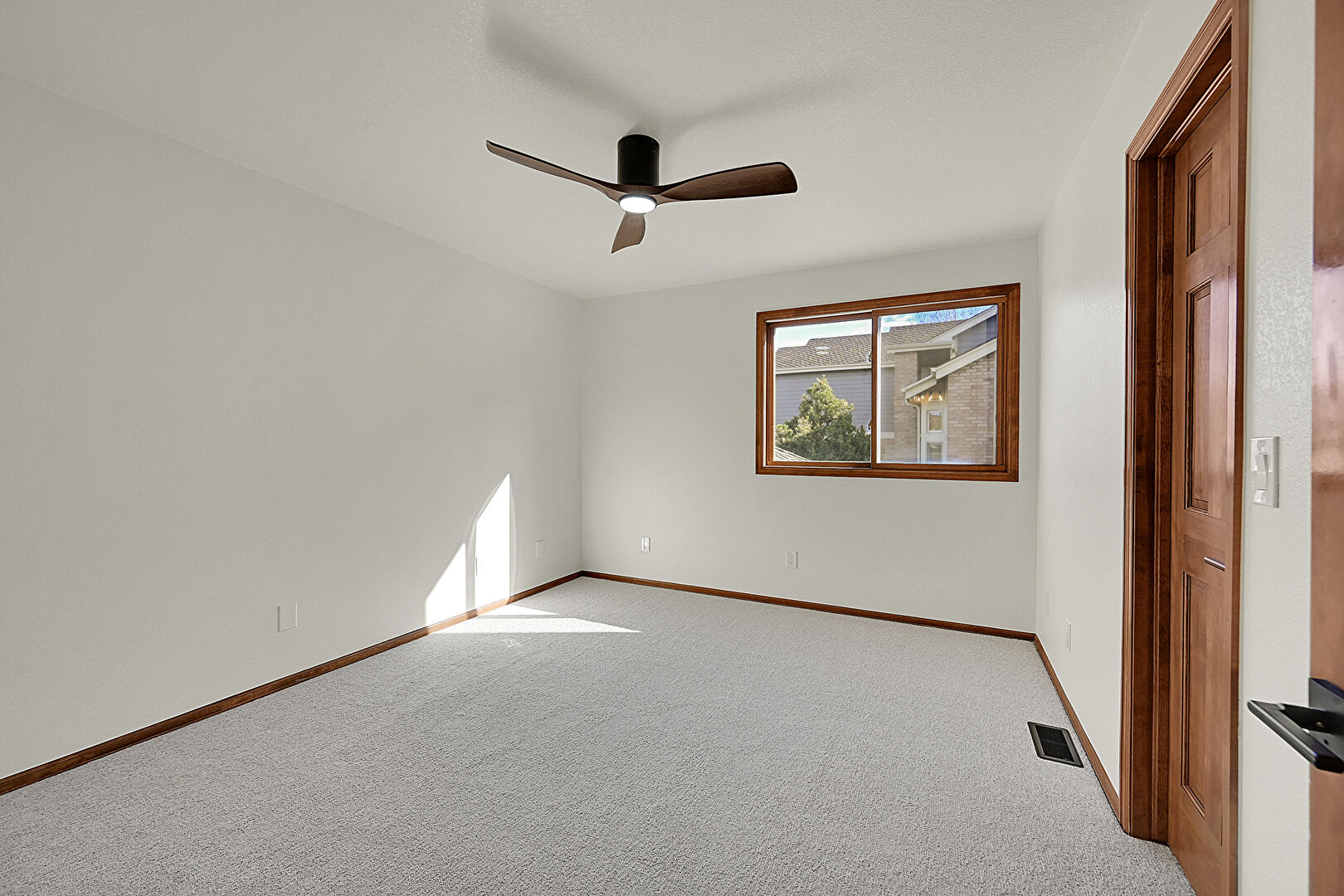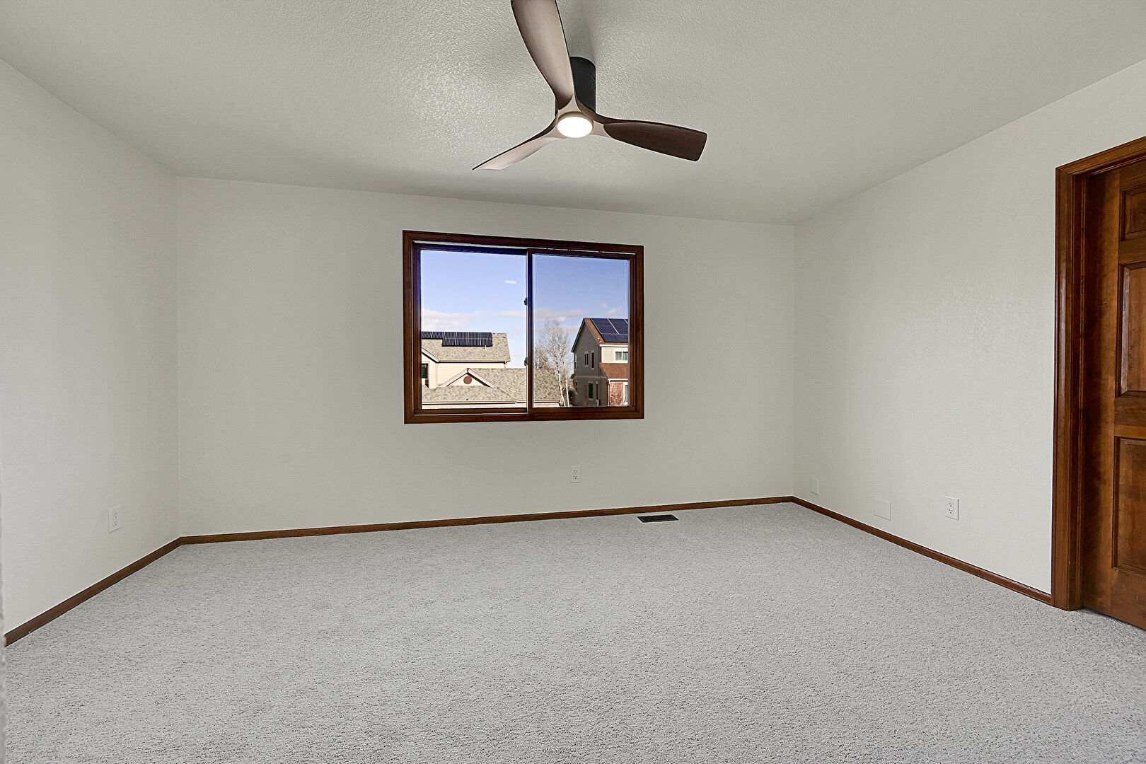 Baseboards Wall, Carpet, Ceiling Fan, Closet, Drywall, Natural Light, Textured Ceiling, Vent, Carpet, Ceiling Fan, Drywall, Natural Light