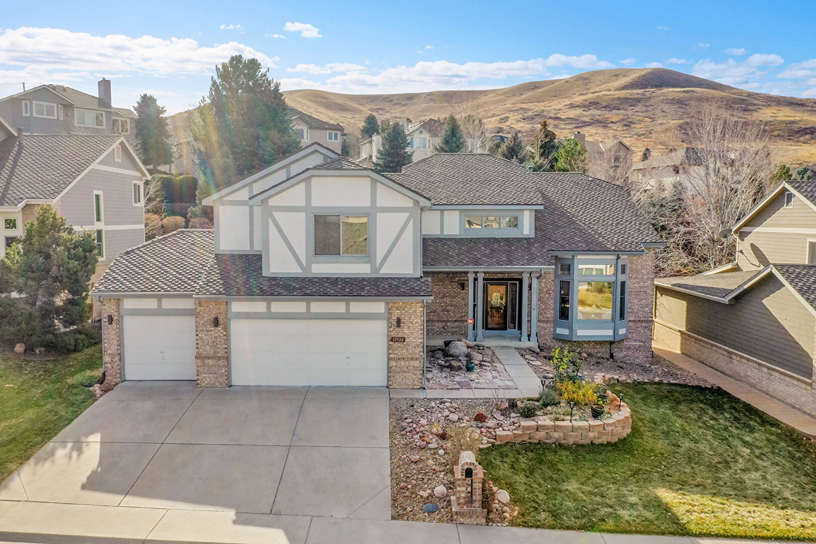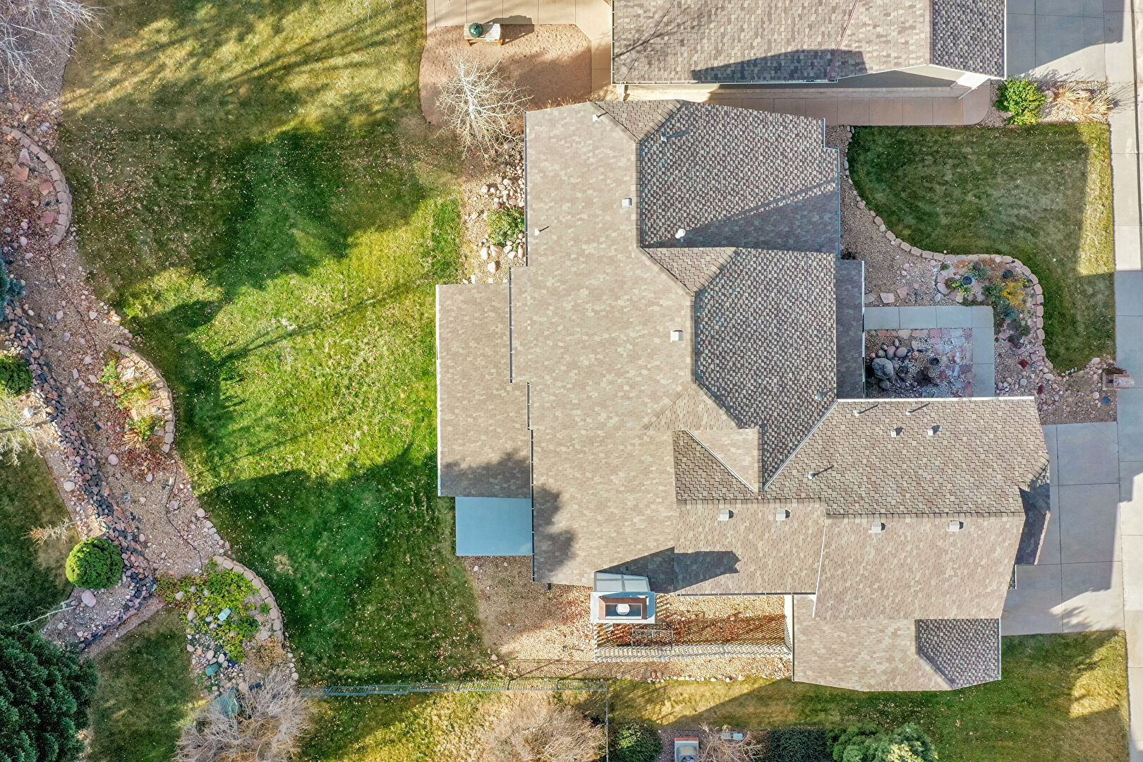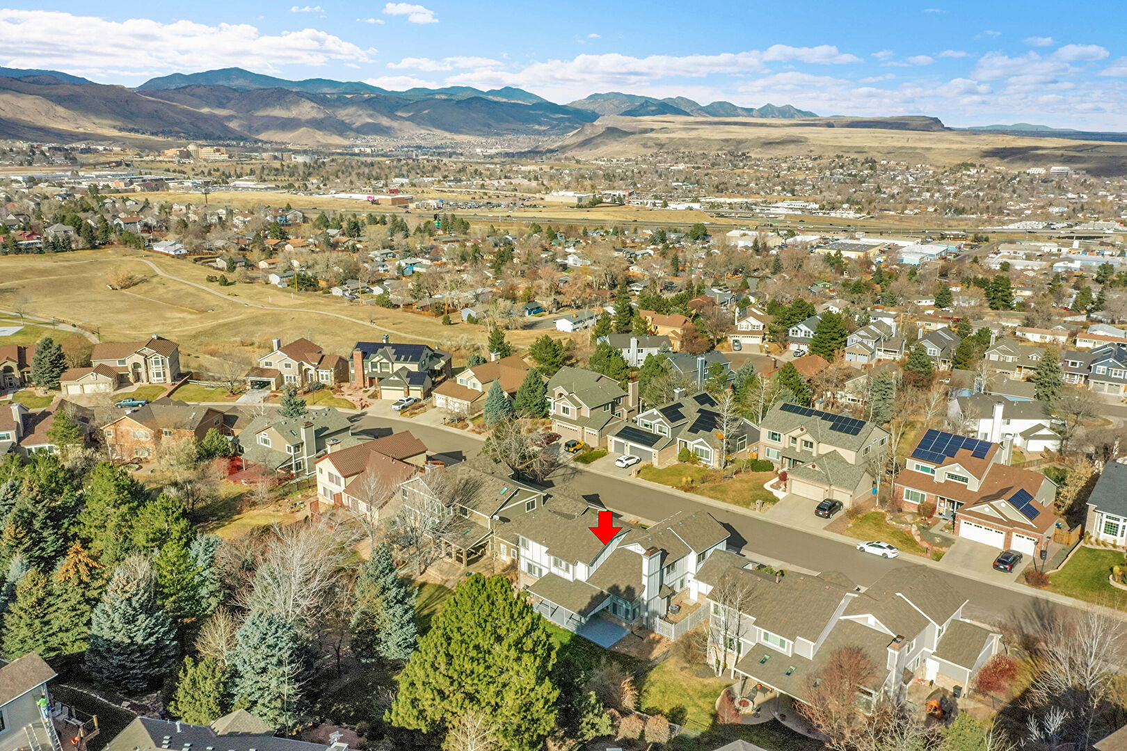 Board Batten Siding, Brick Siding, Built In Garage, Downspout, Driveway, Gutters, Lawn, Mountain View, Porch, Residential View, Satellite Dish, Shingle Roof, Stucco Siding, Vertical Siding, Driveway, Lawn, Mountain View, Porch