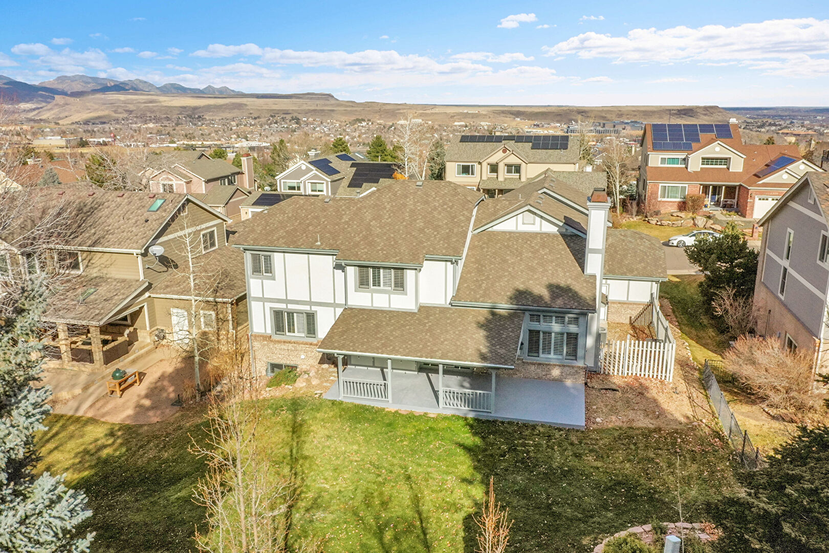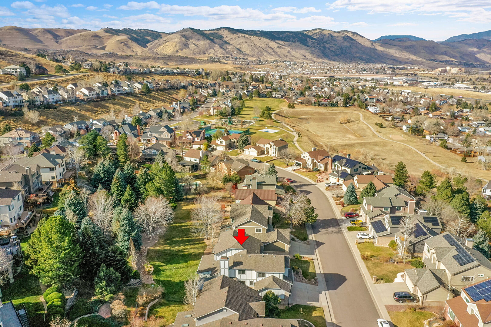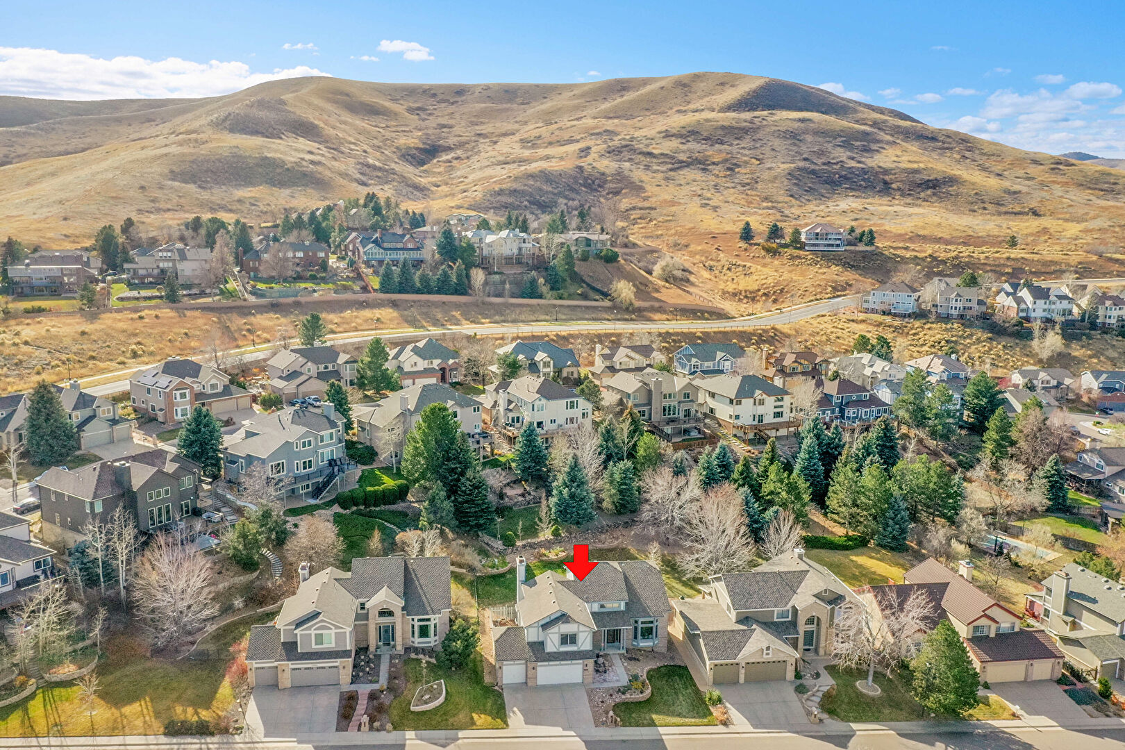 Board Batten Siding, Brick Siding, Built In Garage, Downspout, Driveway, Gutters, Lawn, Mountain View, Porch, Residential View, Satellite Dish, Shingle Roof, Stucco Siding, Vertical Siding, Driveway, Lawn, Mountain View, Porch