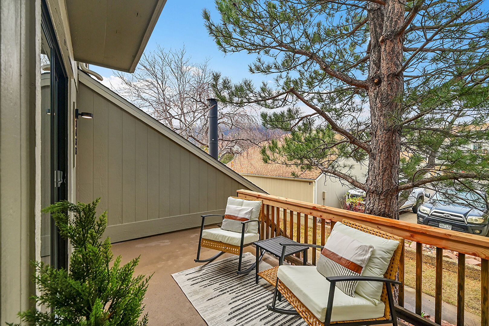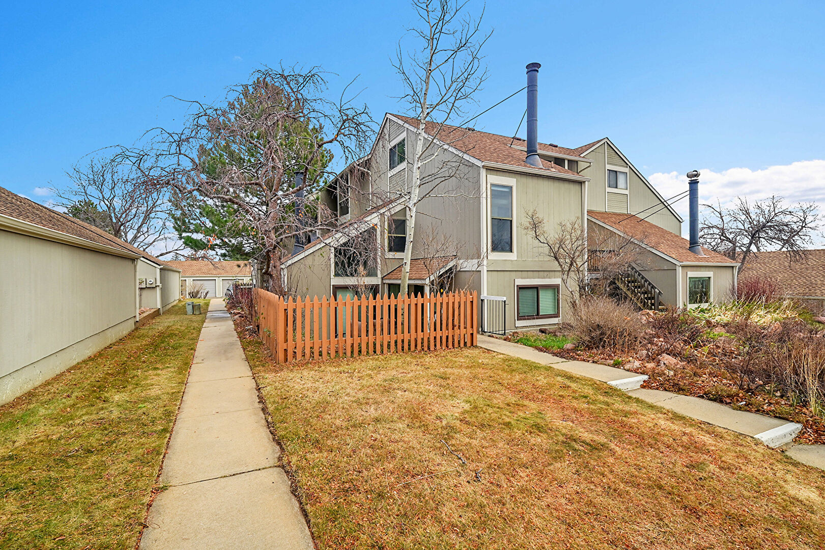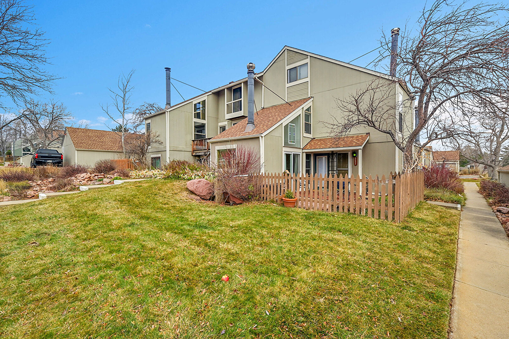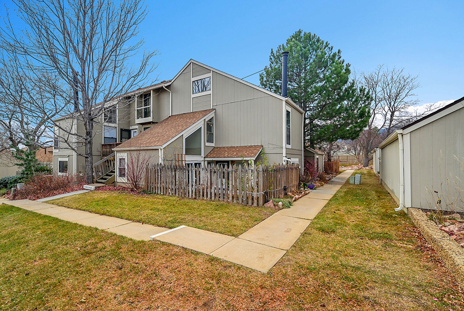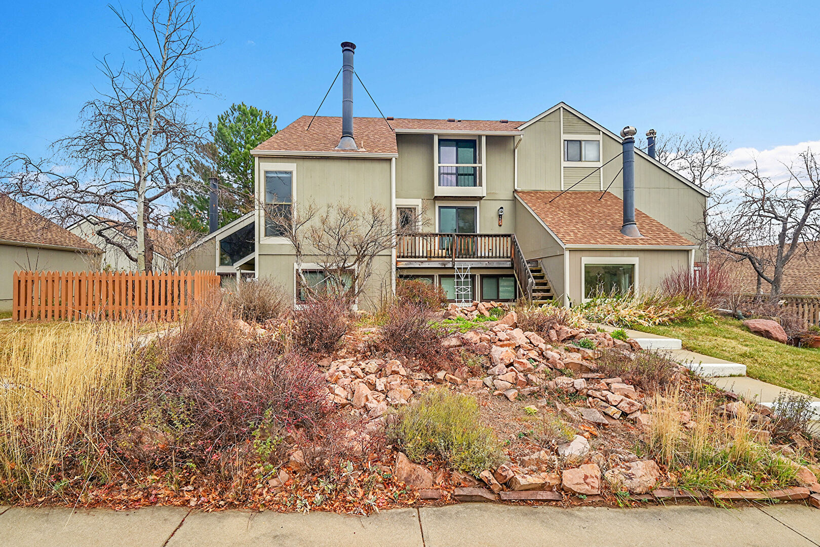 Balcony, Downspout, Fence, Lawn, Shingle Roof, Stairs, Stucco Siding, Gutters, Stucco Siding