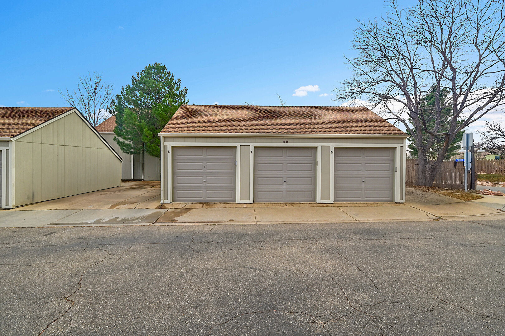 Fence, Residential View, Shingle Roof, Vertical Siding, Outdoor Structure