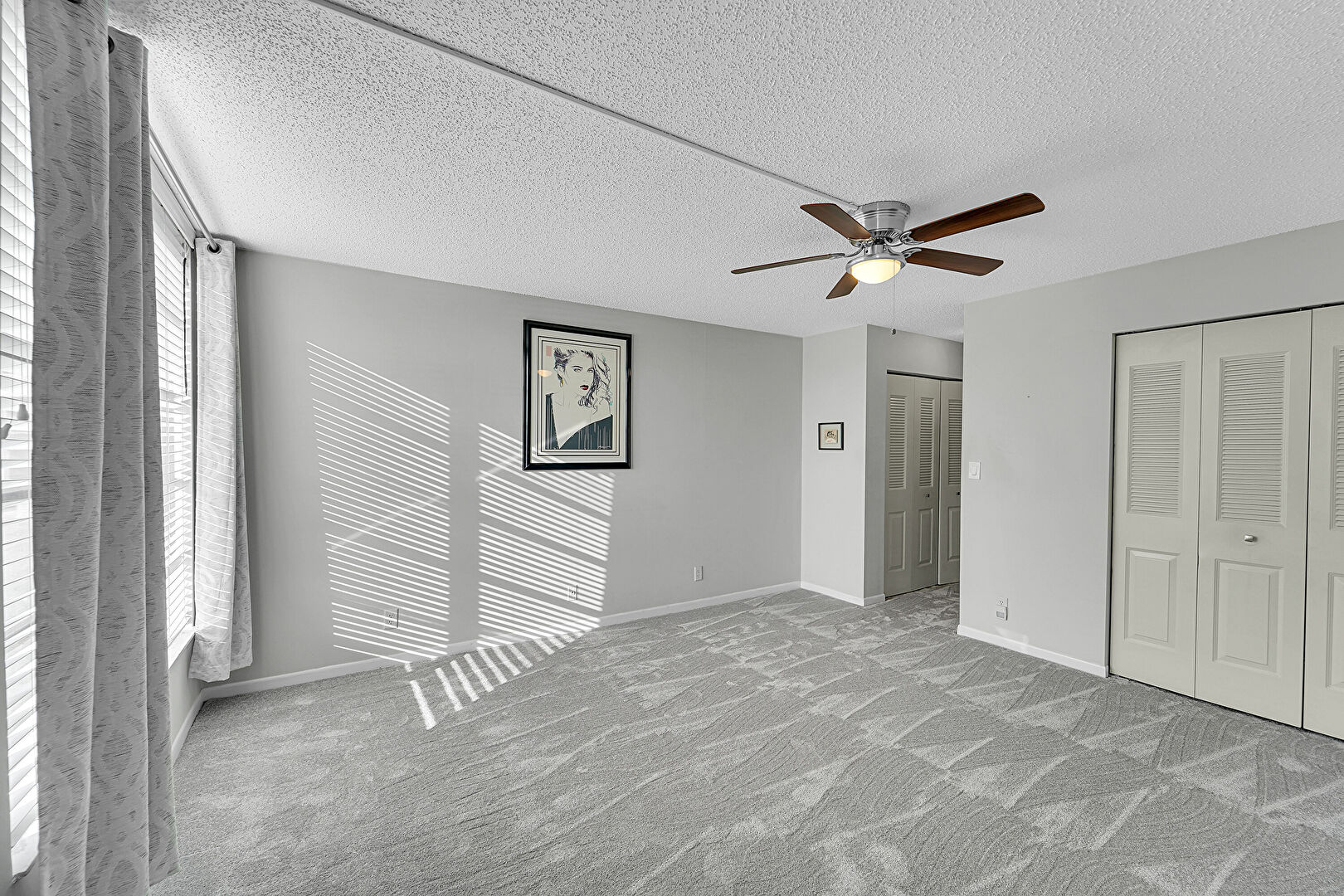 Baseboards Wall, Carpet, Ceiling Fan, Closet, Drywall, Natural Light, Textured Ceiling, Two Closets, Vent, Carpet, Ceiling Fan, Two Closets
