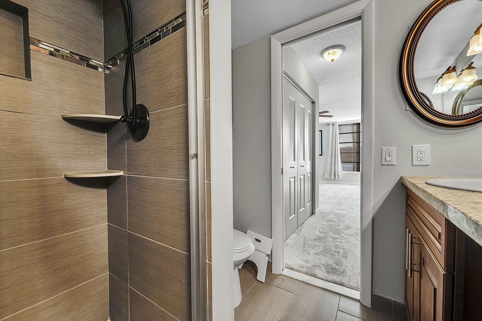 Baseboards Wall, Carpet, Drywall, Full Bathroom, Tile Floor, Vanity, Vent, Drywall, Textured Ceiling