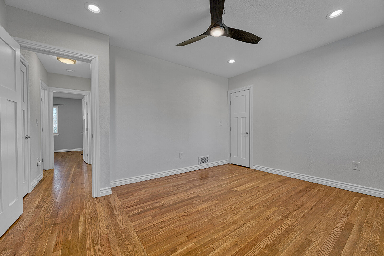 Baseboards Wall, Ceiling Fan, Drywall, Ensuite Bathroom, Natural Light, Recessed Lighting, Vent, Wood Finish Floor, Ceiling Fan, Natural Light, Wood Finish Floor