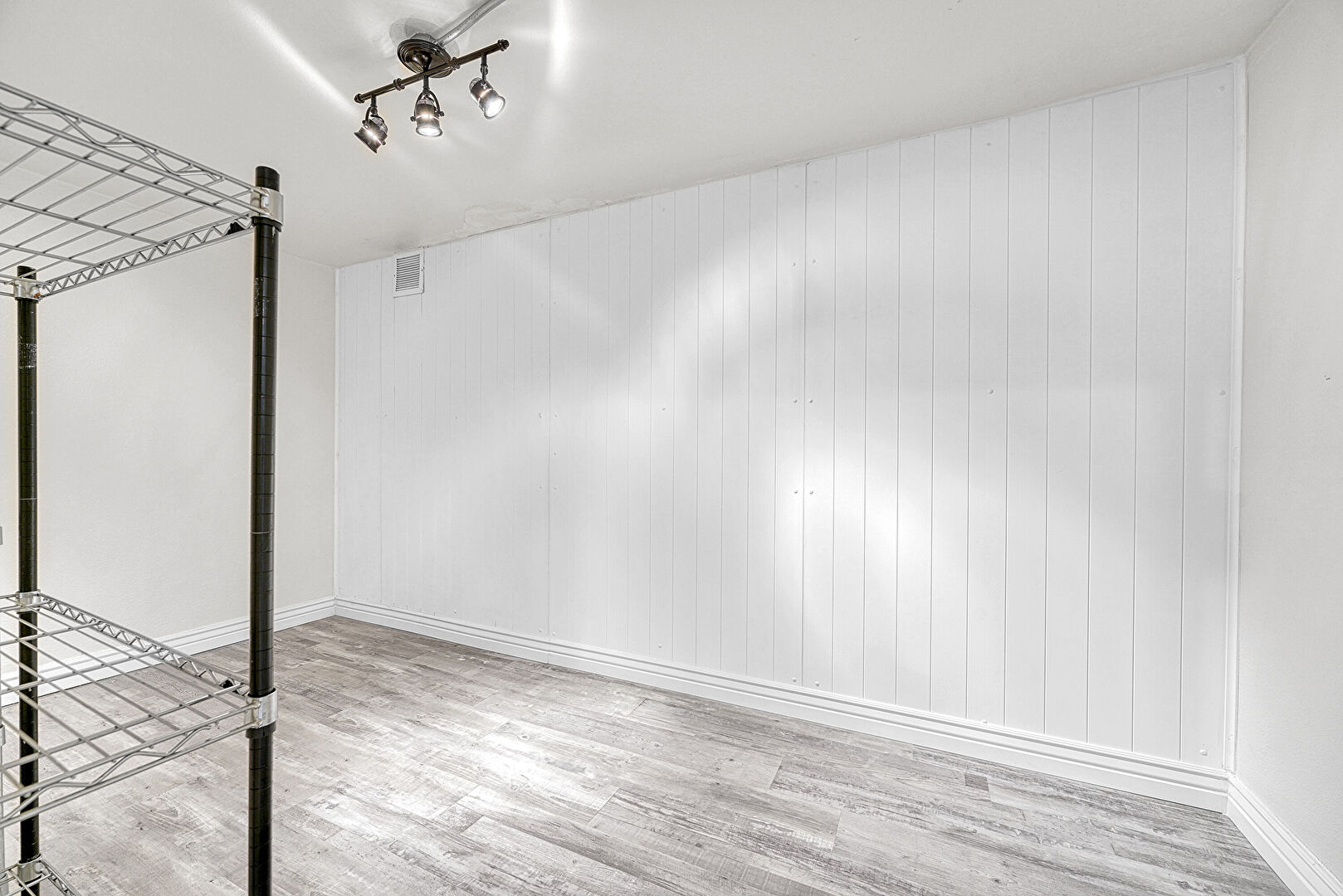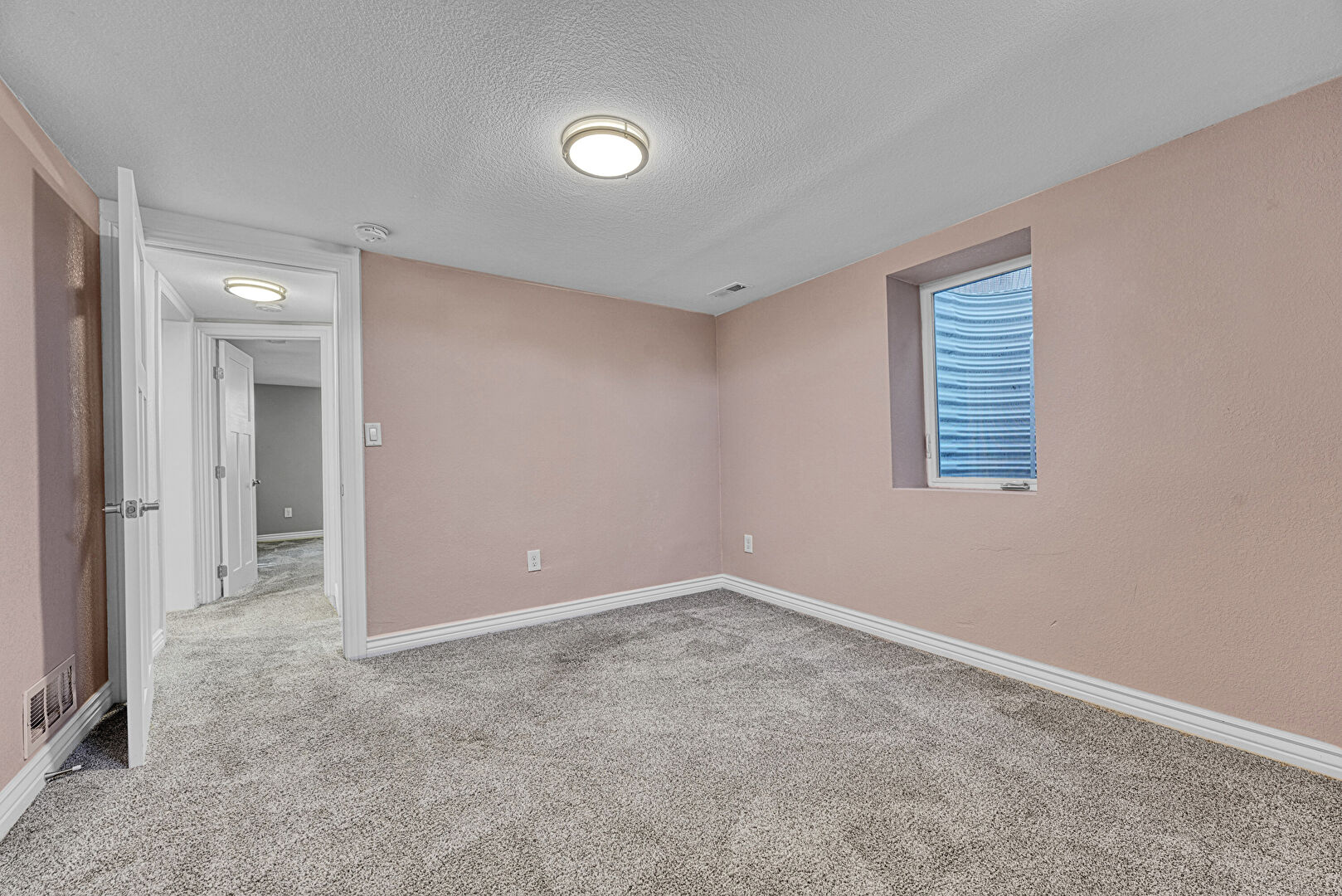 Baseboards Wall, Basement, Carpet, Drywall, Natural Light, Smoke Carbon Monoxide Detector, Textured Ceiling, Textured Wall, Vent, Wood Finish Floor, Basement, Ceiling Fan, Closet, Textured Ceiling