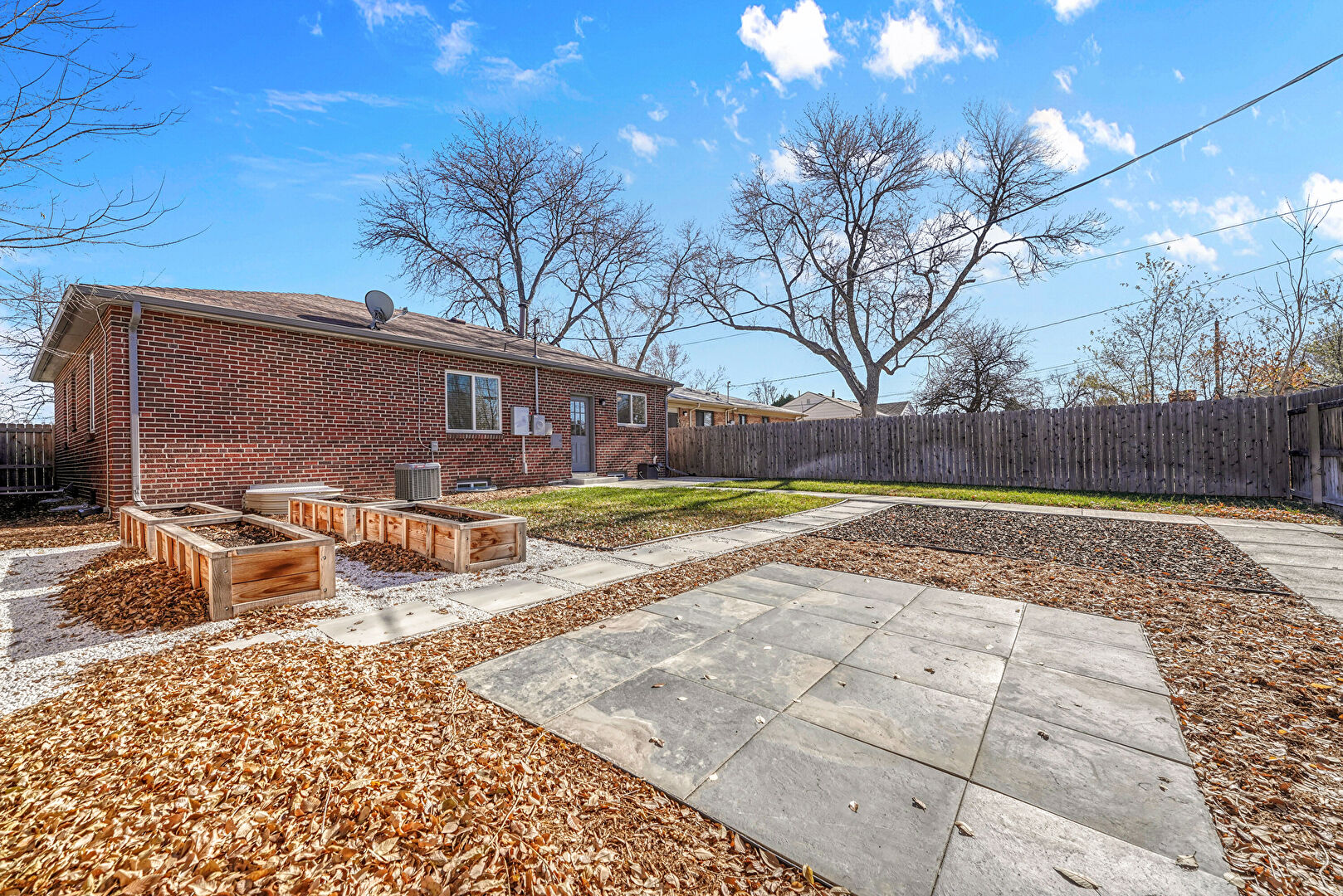 Brick Siding, Central Ac, Downspout, Fence, Garden, Gutters, Lawn, Patio, Satellite Dish, Brick Siding, Patio