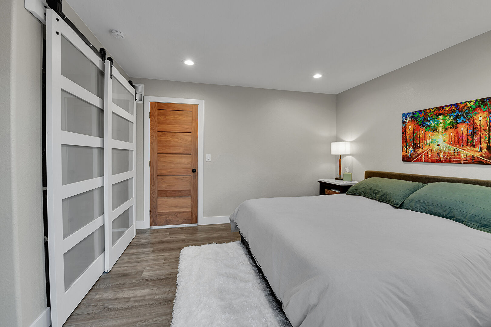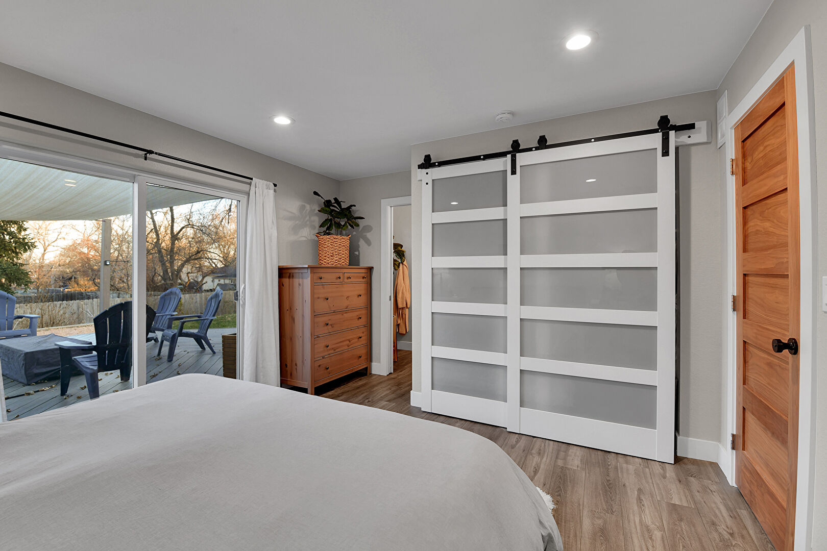 Access To Exterior, Barn Door, Baseboards Wall, Closet, Drywall, Natural Light, Recessed Lighting, Smoke Carbon Monoxide Detector, Vent, Wood Finish Floor, Baseboards Wall, Recessed Lighting, Wood Finish Floor