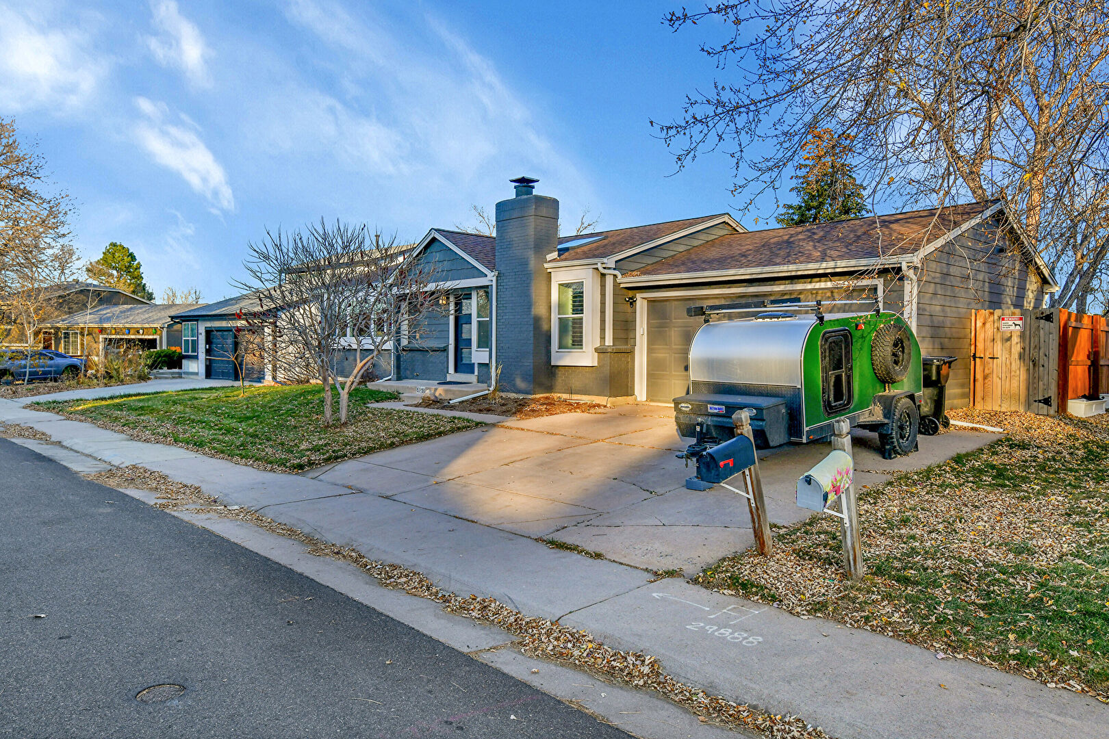 Brick Siding, Chimney, Downspout, Driveway, Fence, Gutters, Horizontal Siding, Lawn, Shake Shingle Siding, Shingle Roof, Stoop, Chimney, Downspout, Shake Shingle Siding