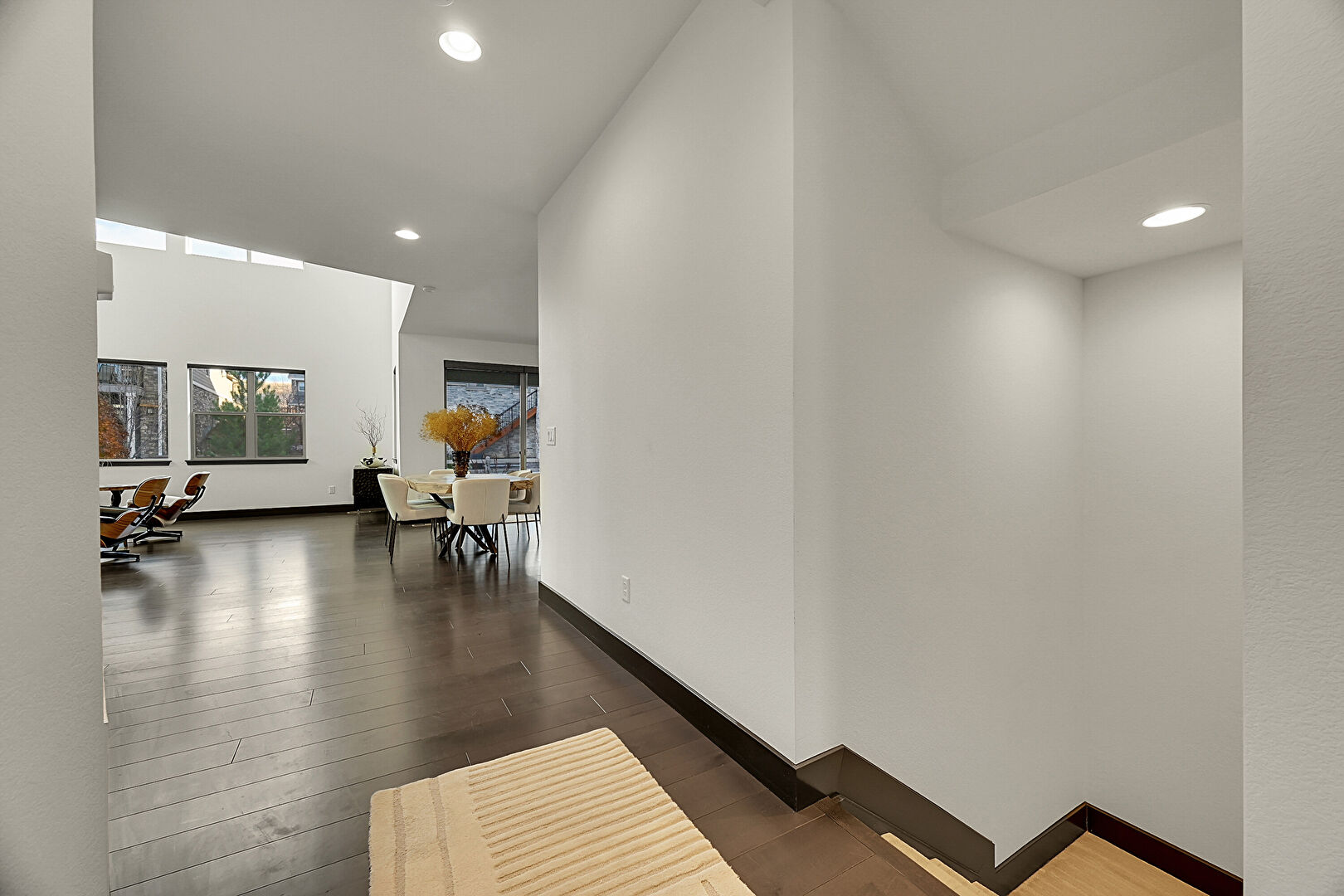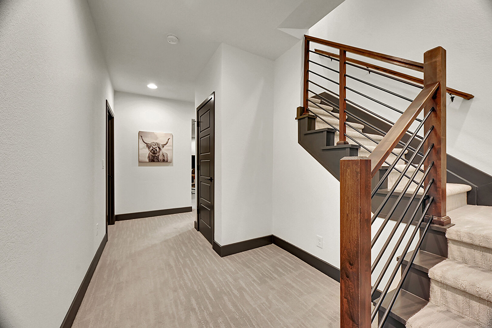 Baseboards Wall, Carpet, Recessed Lighting, Stairs, Drywall