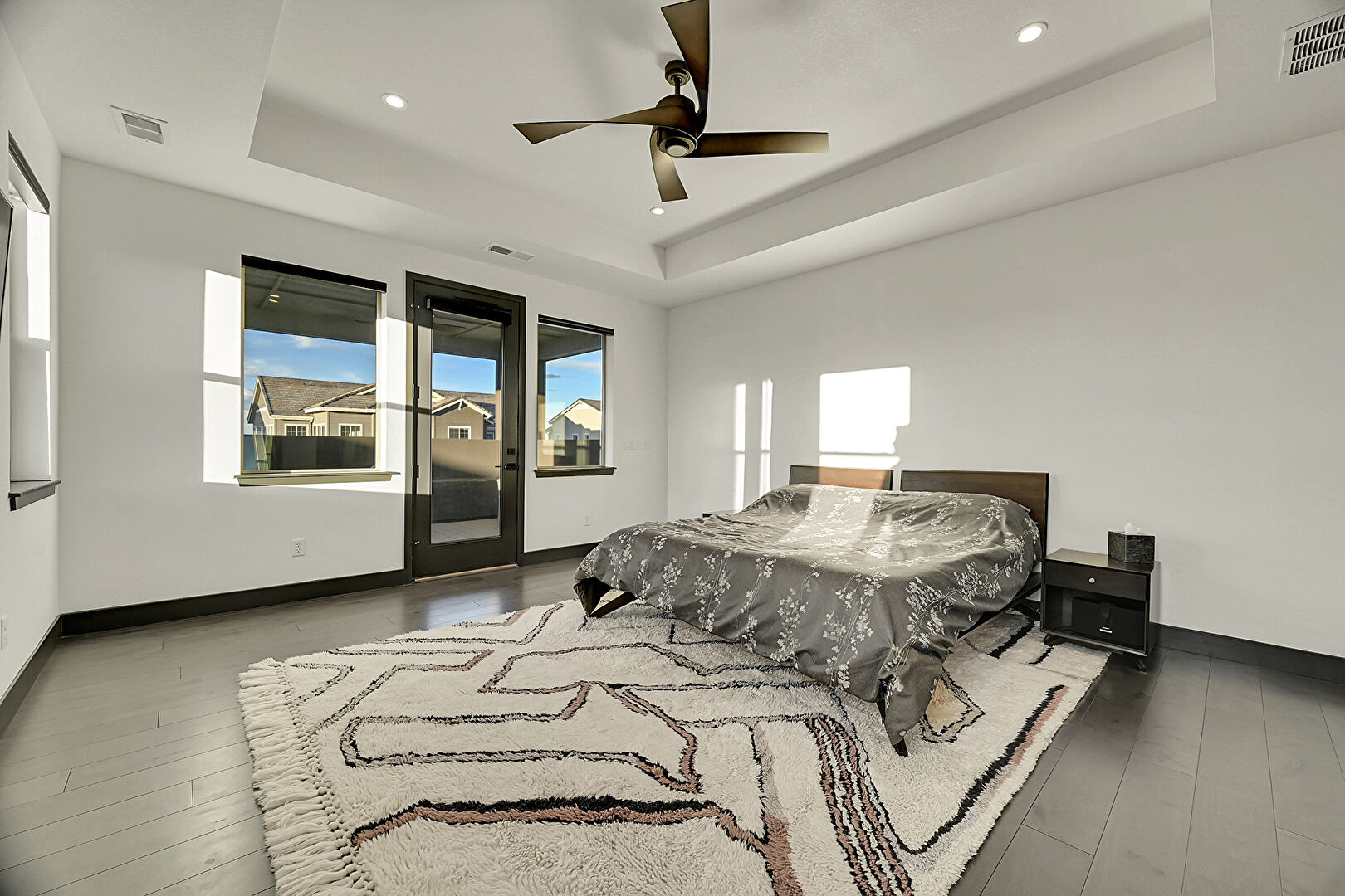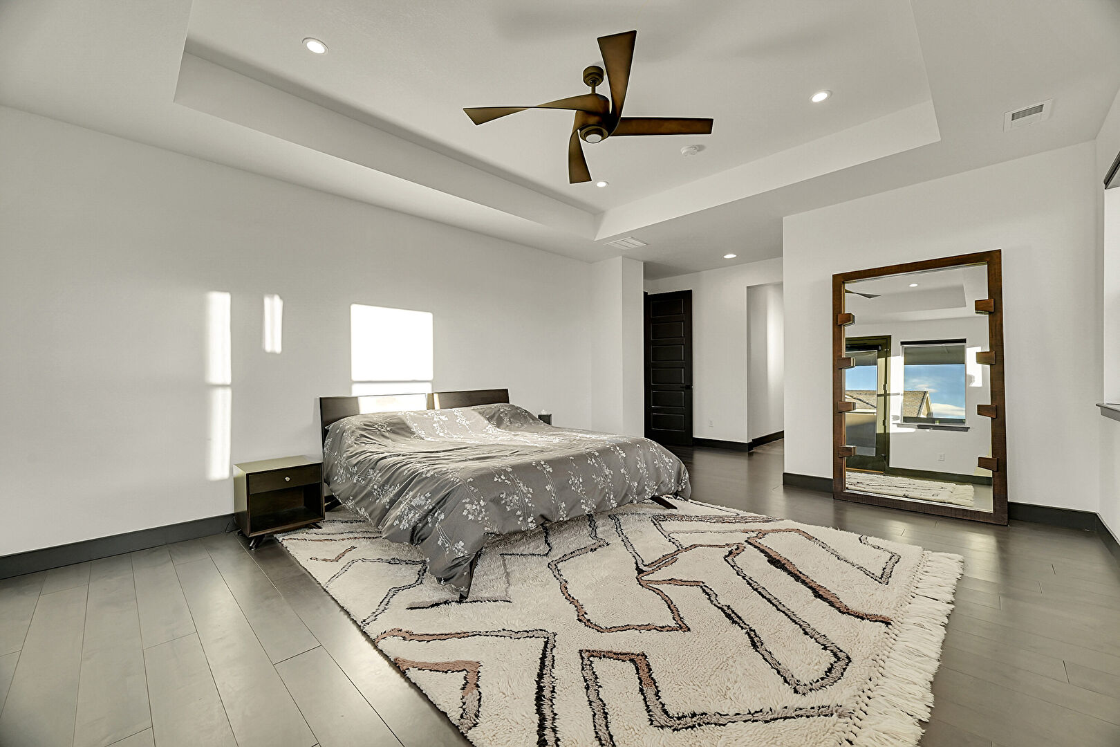 Baseboards Wall, Ceiling Fan, Drywall, Ensuite Bathroom, Natural Light, Recessed Lighting, Tray Ceiling, Vent, Wood Finish Floor, Access To Exterior, Natural Light, Recessed Lighting, Vent