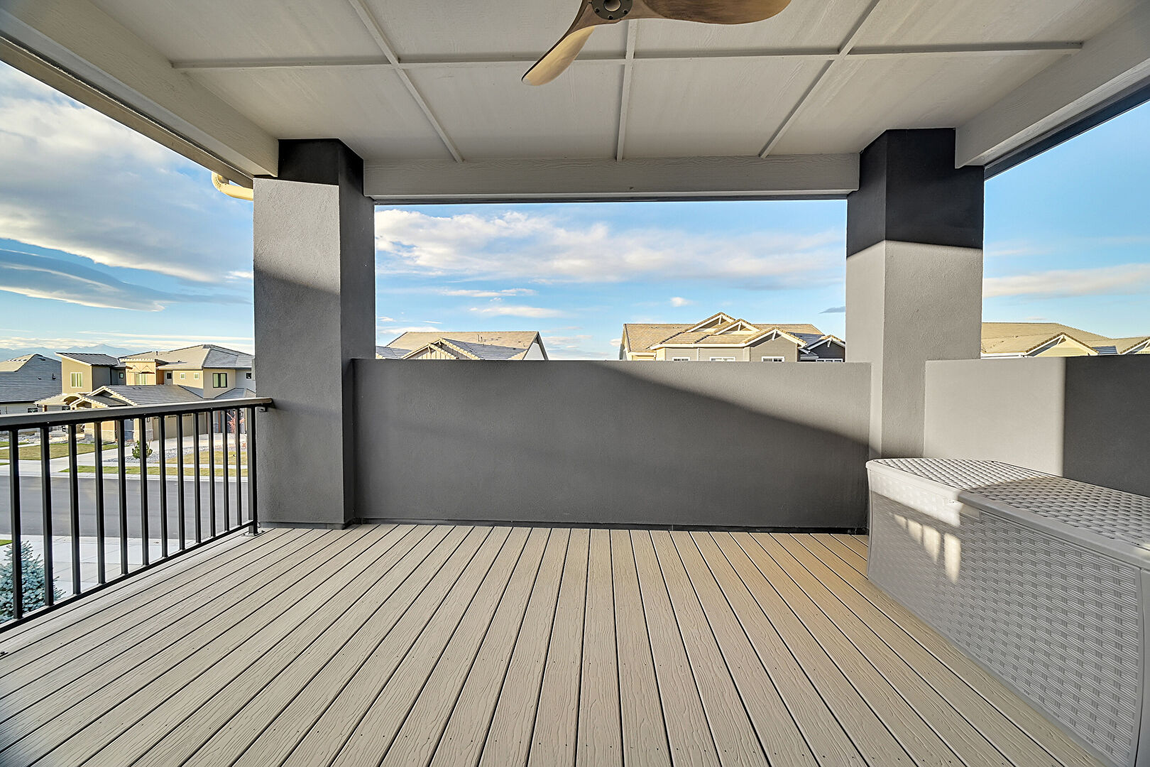 Balcony, Ceiling Fan, Patio, Residential View, Ceiling Fan, Deck, Residential View