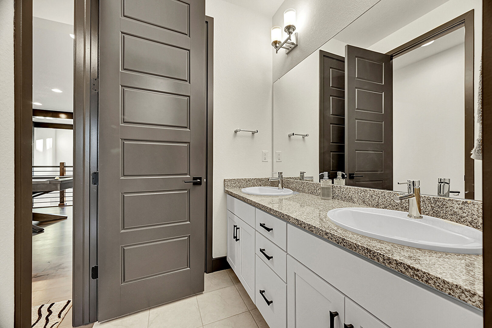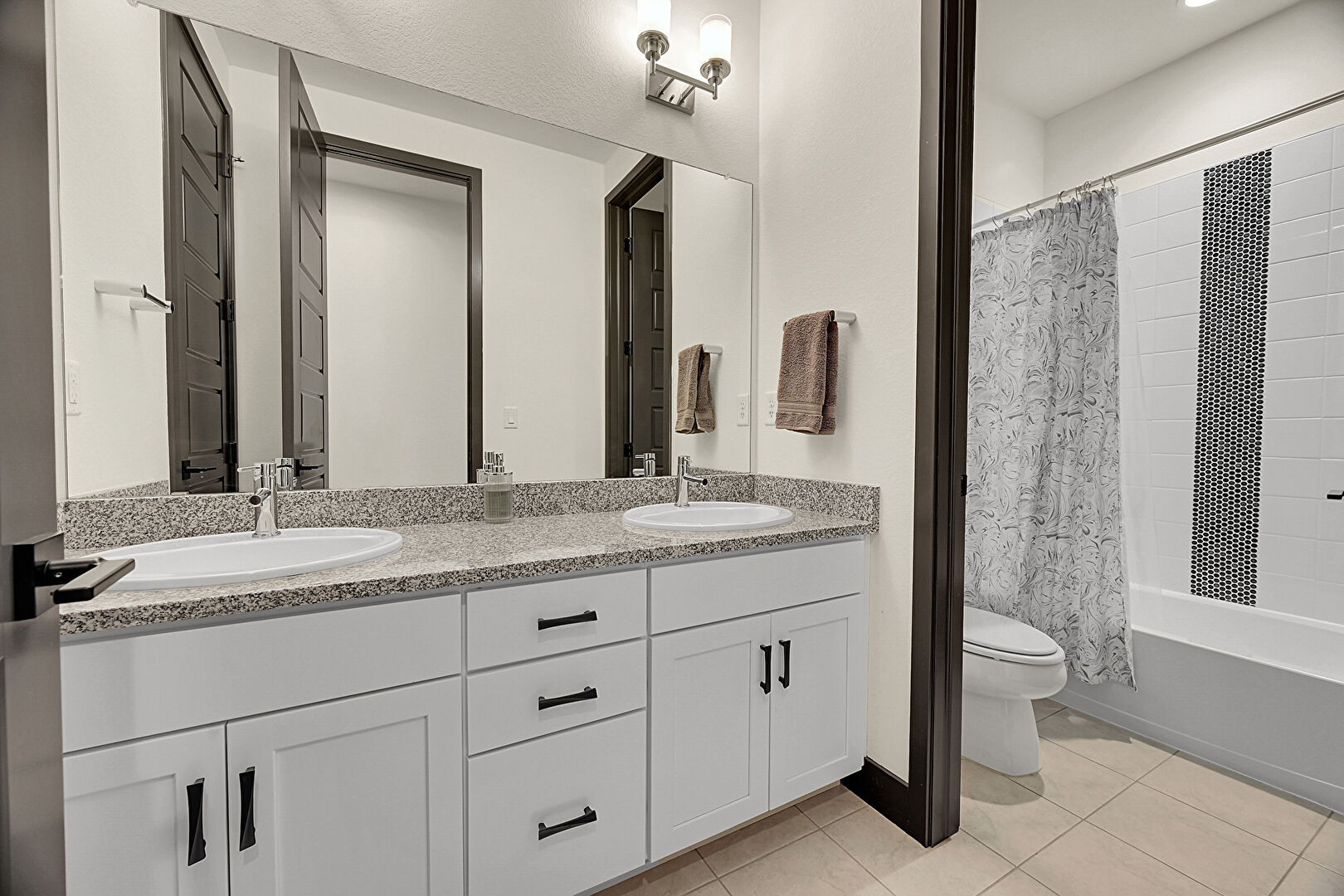 Combined Bath Shower, Double Vanity, Drywall, Full Bathroom, Tile Floor