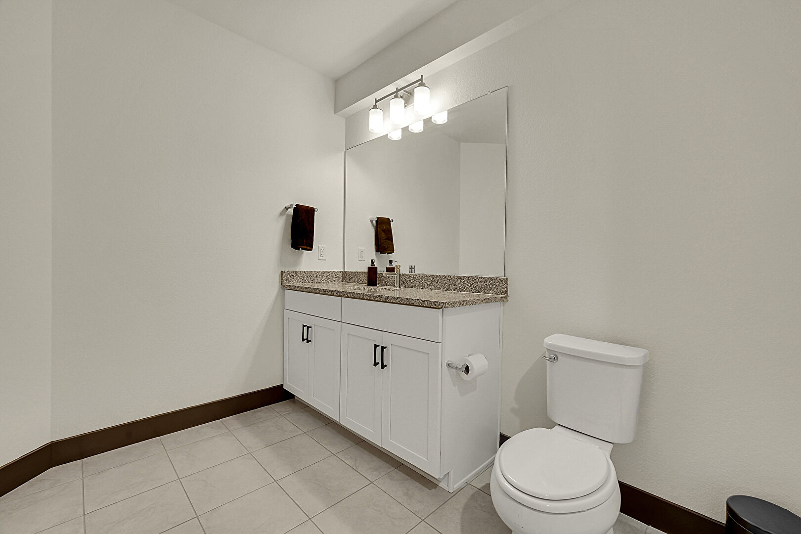 Baseboards Wall, Combined Bath Shower, Drywall, Full Bathroom, Half Bathroom, Recessed Lighting, Tile Floor, Vanity, Baseboards Wall, Tile Floor
