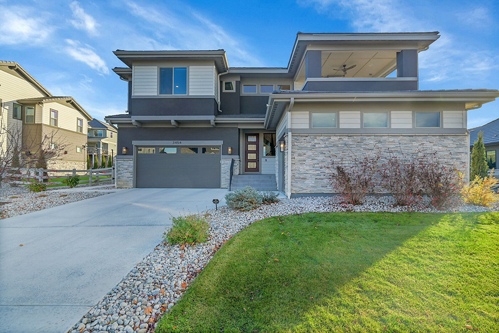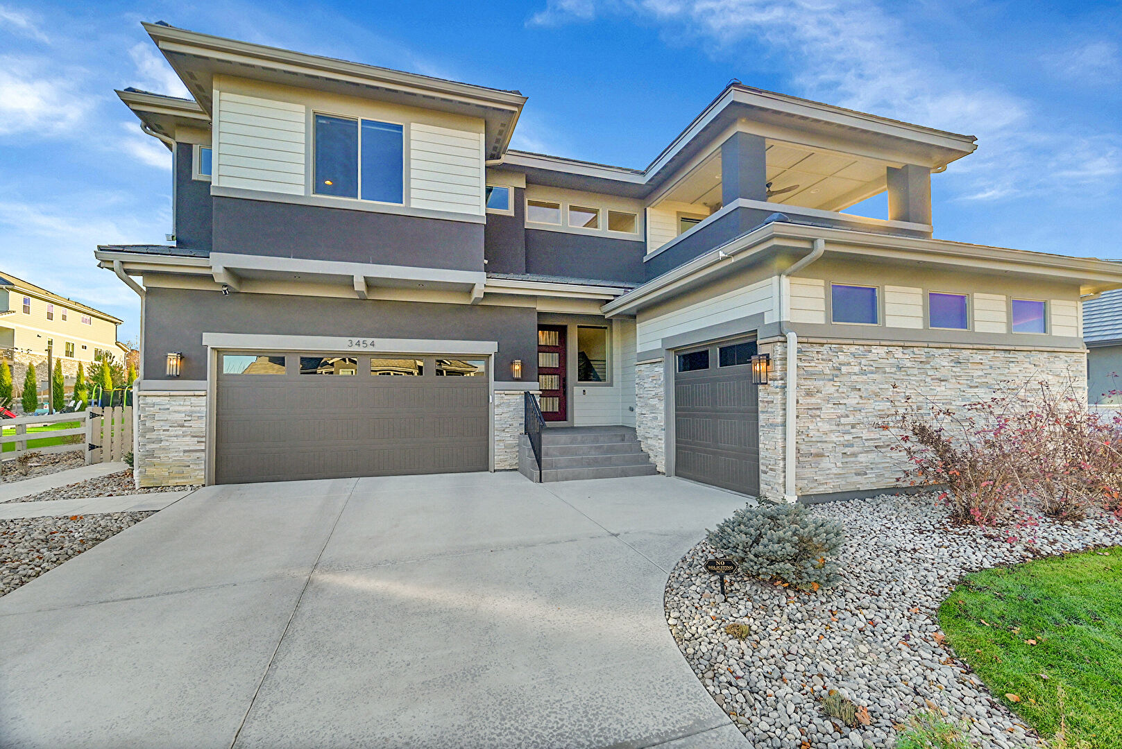 Built In Garage, Driveway, Porch, Stone Siding, Stucco Siding, Horizontal Siding