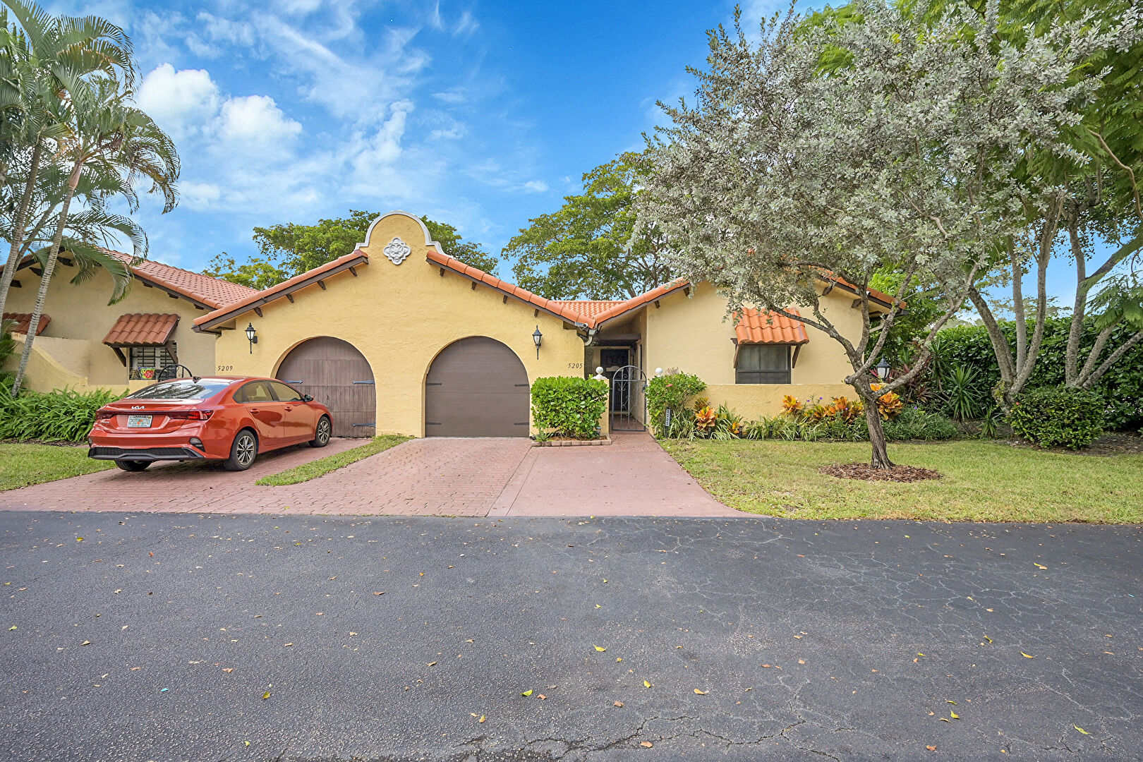 Awning, Driveway, Lawn, Stucco Siding, Tile Roof, Awning, Driveway