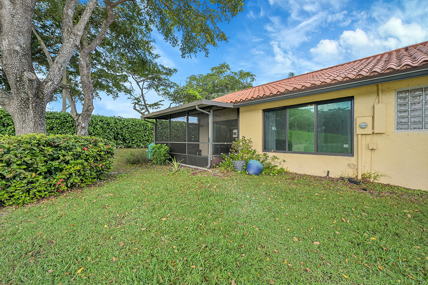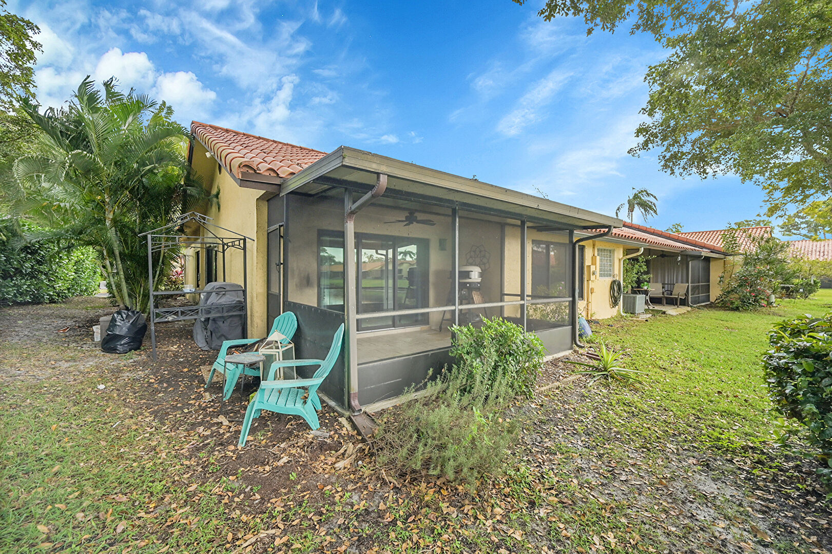 Ceiling Fan, Central Ac, Grill, Gutters, Lawn, Stucco Siding, Sunroom, Tile Roof, Downspout, Electric Meter