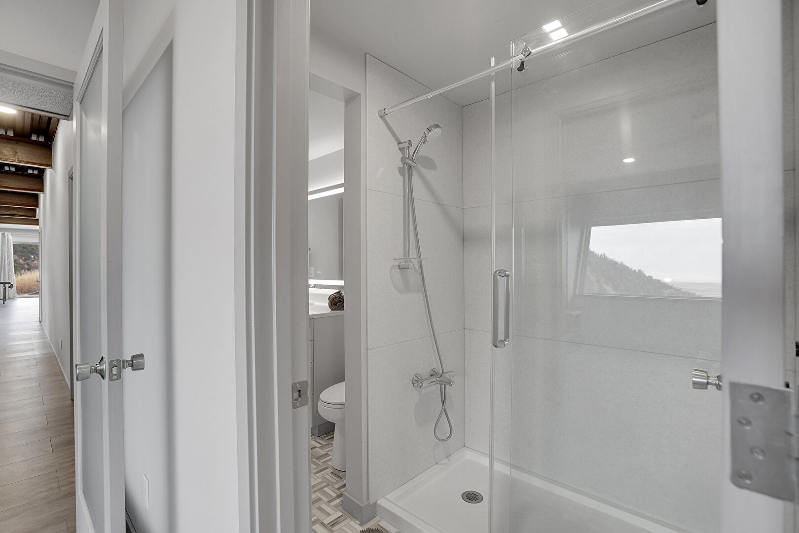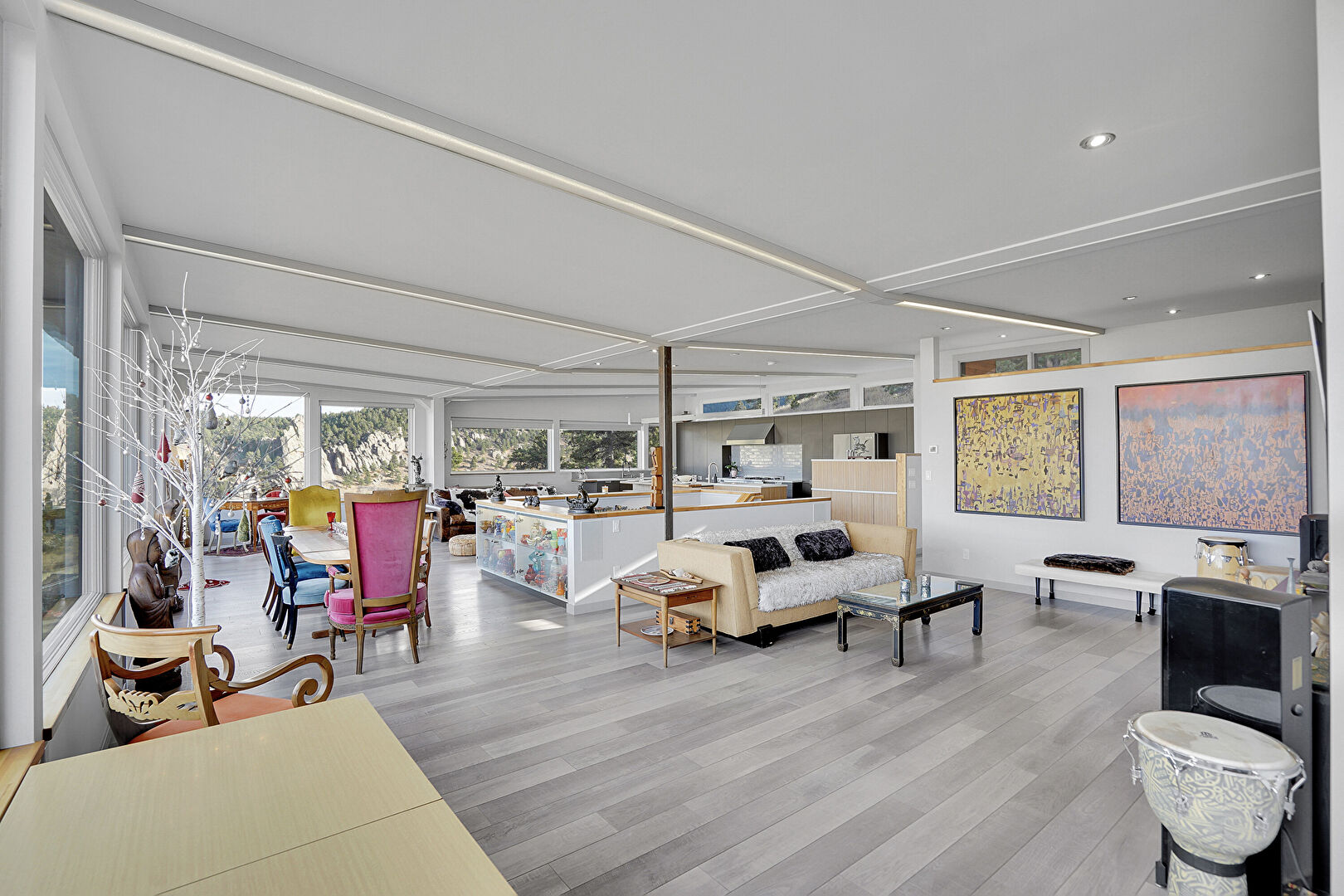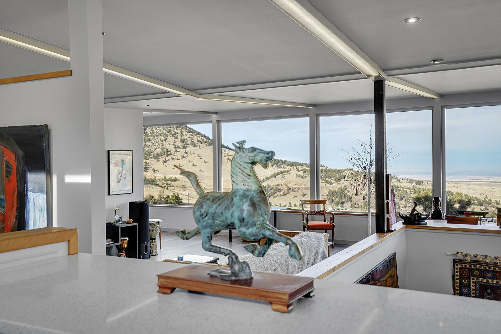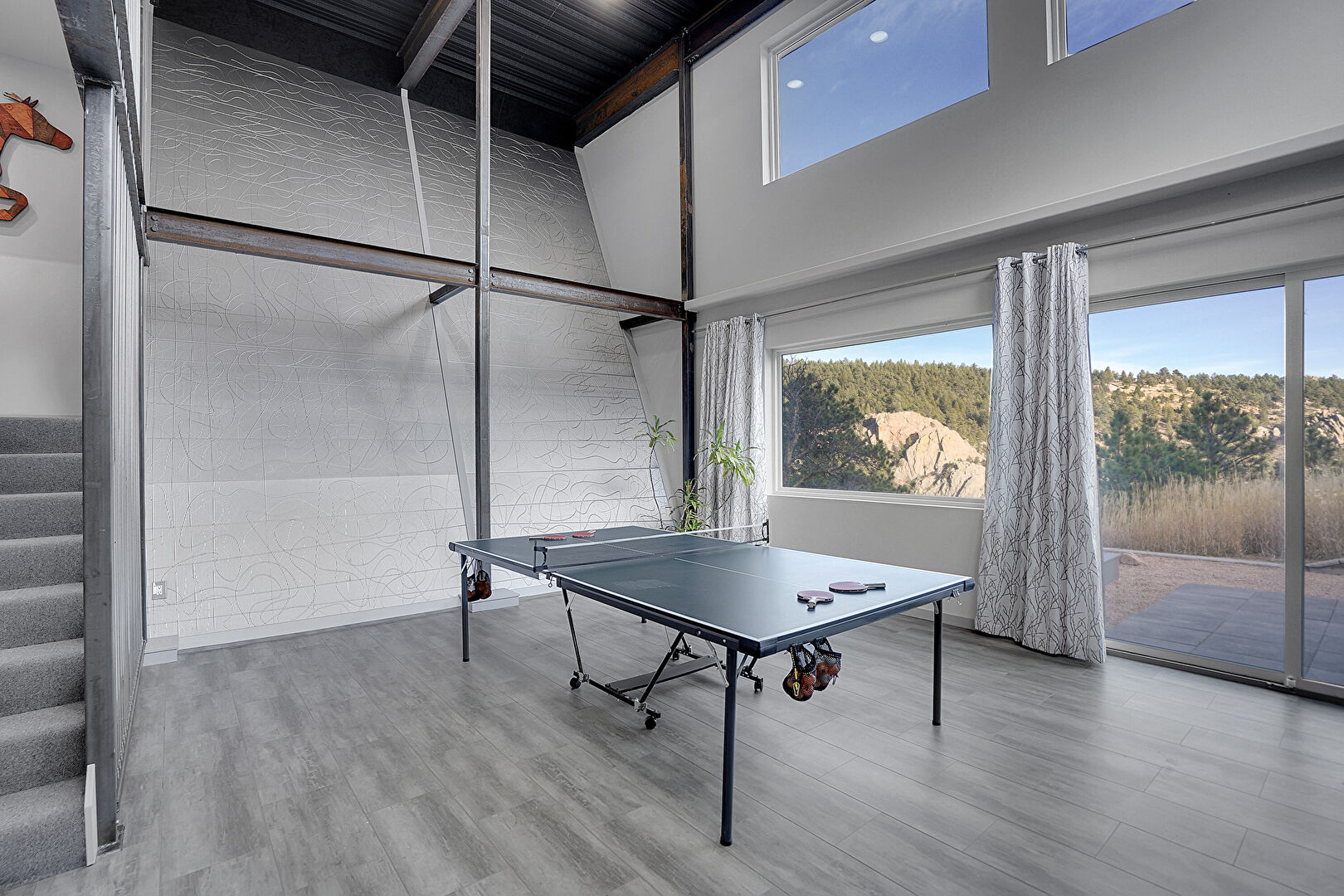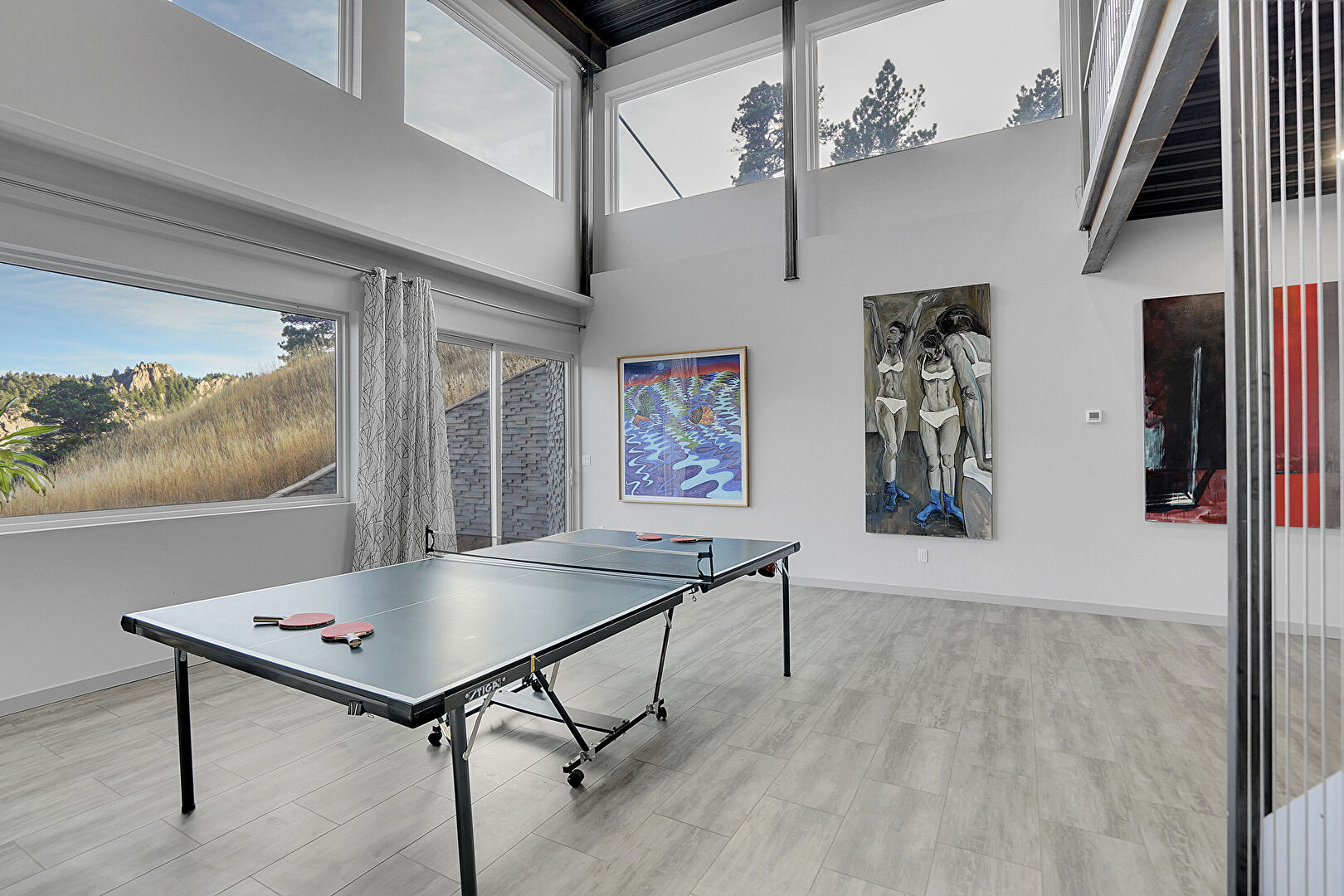 Baseboards Wall, Drywall, Floor Ceiling Windows, Forest View, Mountain View, Natural Light, Recessed Lighting, Vaulted Ceiling, Wood Finish Floor, Drywall, Natural Light, Wood Finish Floor