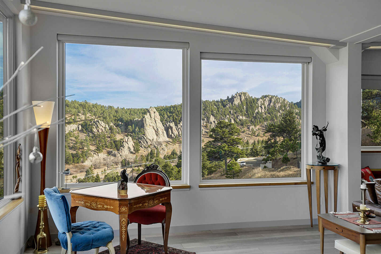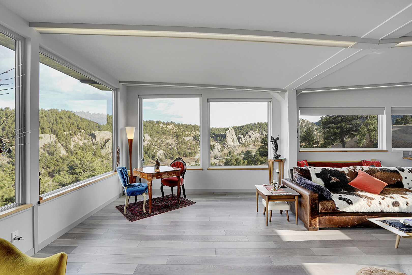 Baseboards Wall, Drywall, Forest View, Mountain View, Natural Light, Recessed Lighting, Sunroom, Wood Finish Floor, Woods View, Baseboards Wall, Drywall, Mountain View, Natural Light, Smoke Carbon Monoxide Detector, Wood Finish Floor, Woods View