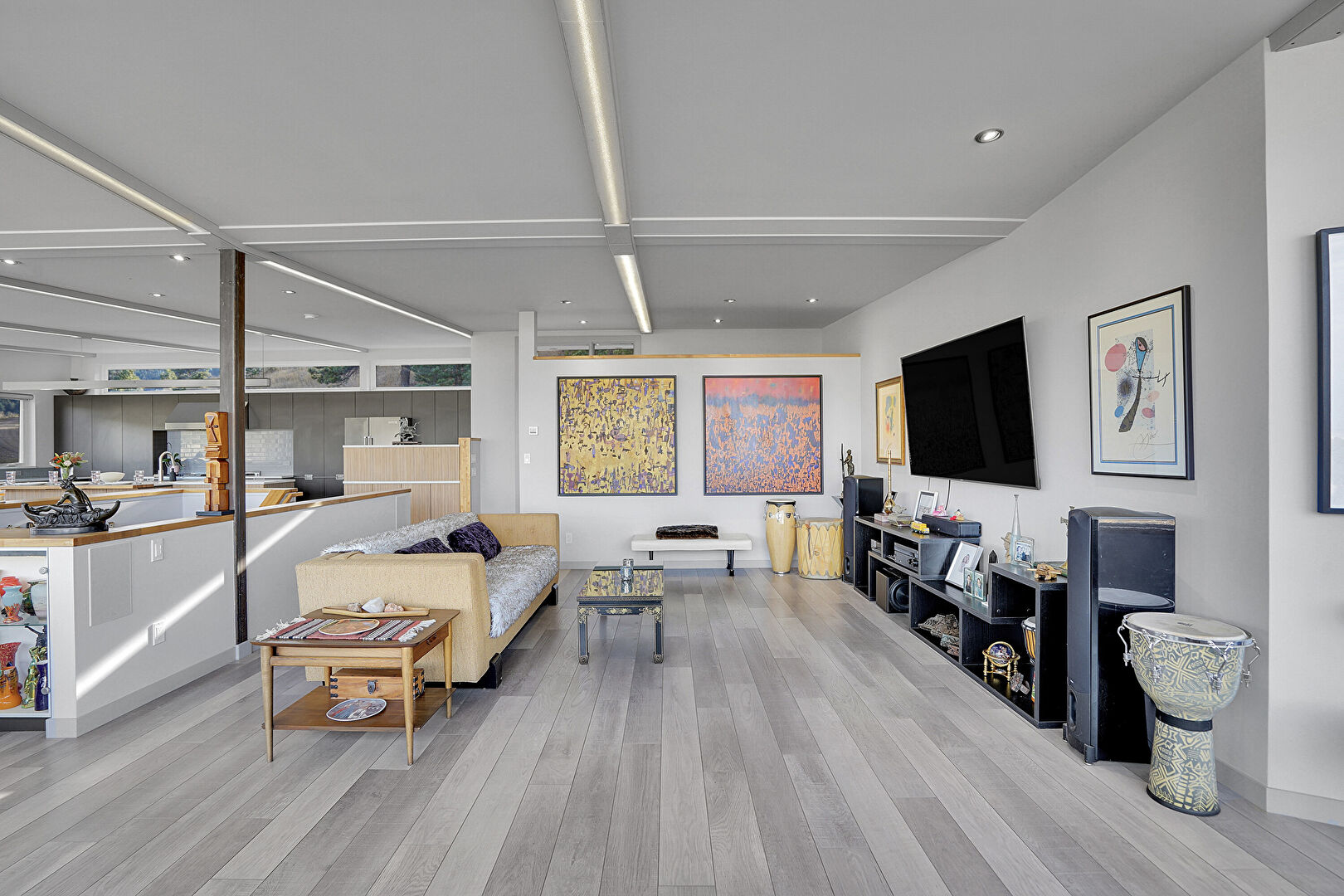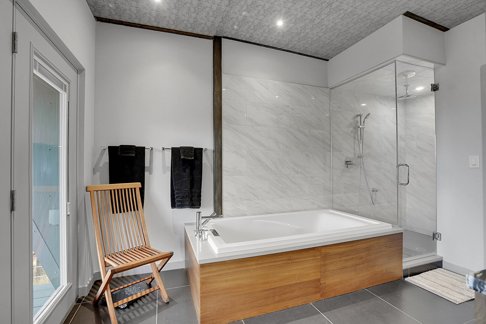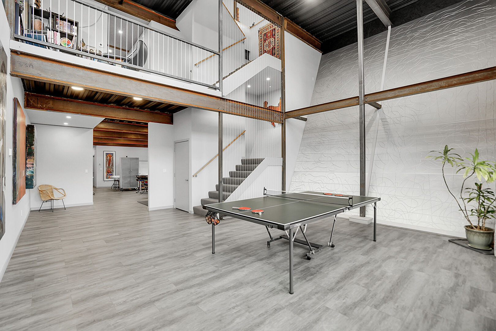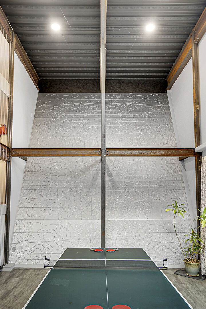 Baseboards Wall, Beamed Ceiling, Drywall, High Ceiling, Natural Light, Wood Ceiling, Wood Finish Floor, Woods View, Drywall, Natural Light, Recessed Lighting, Wood Finish Floor