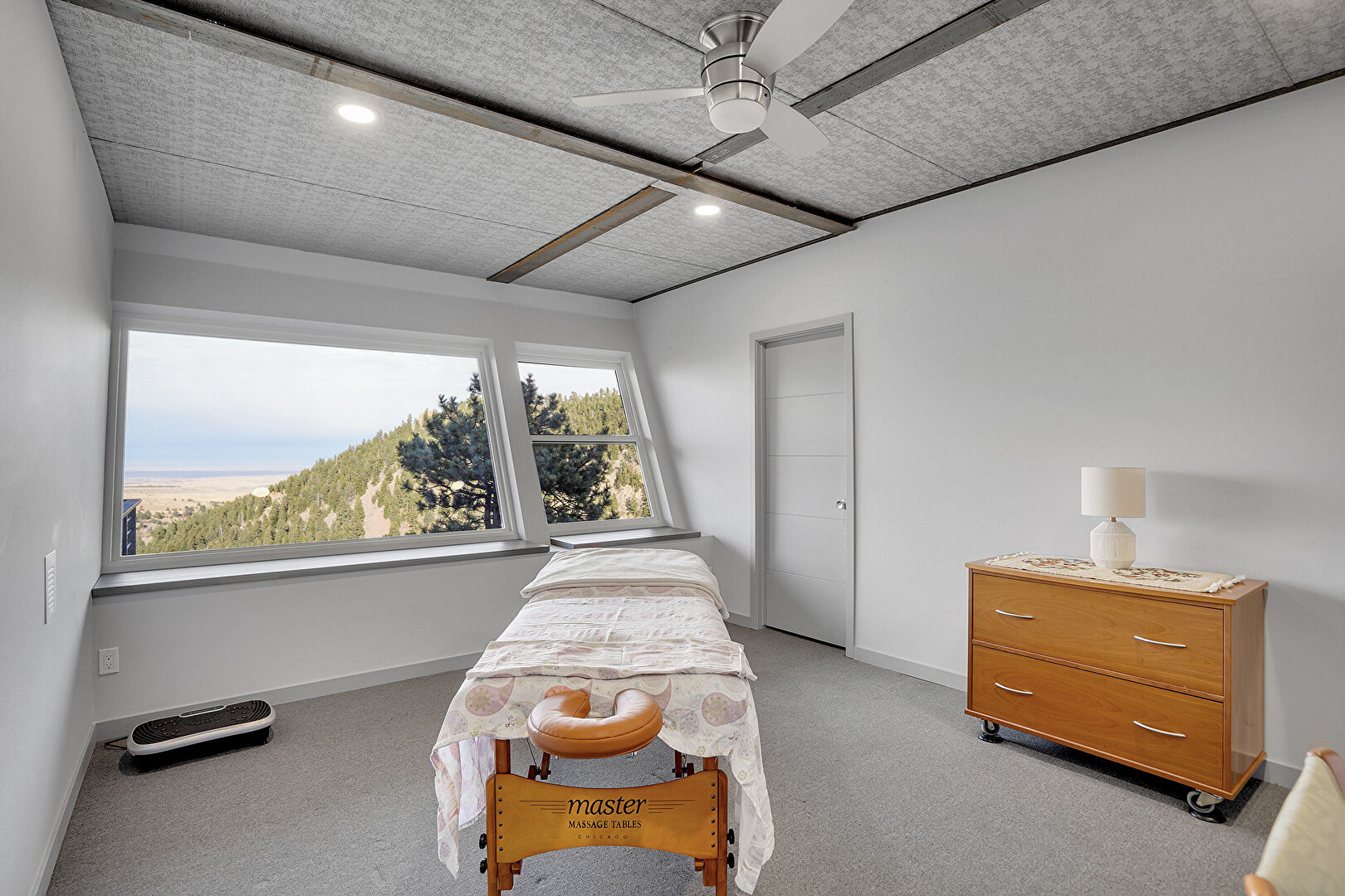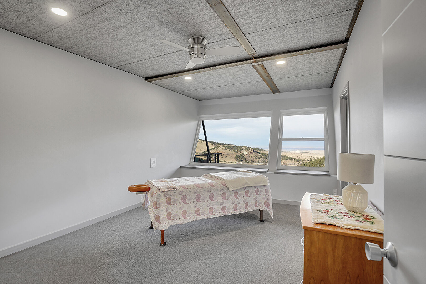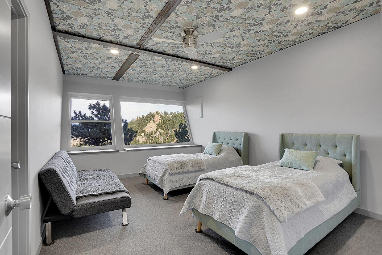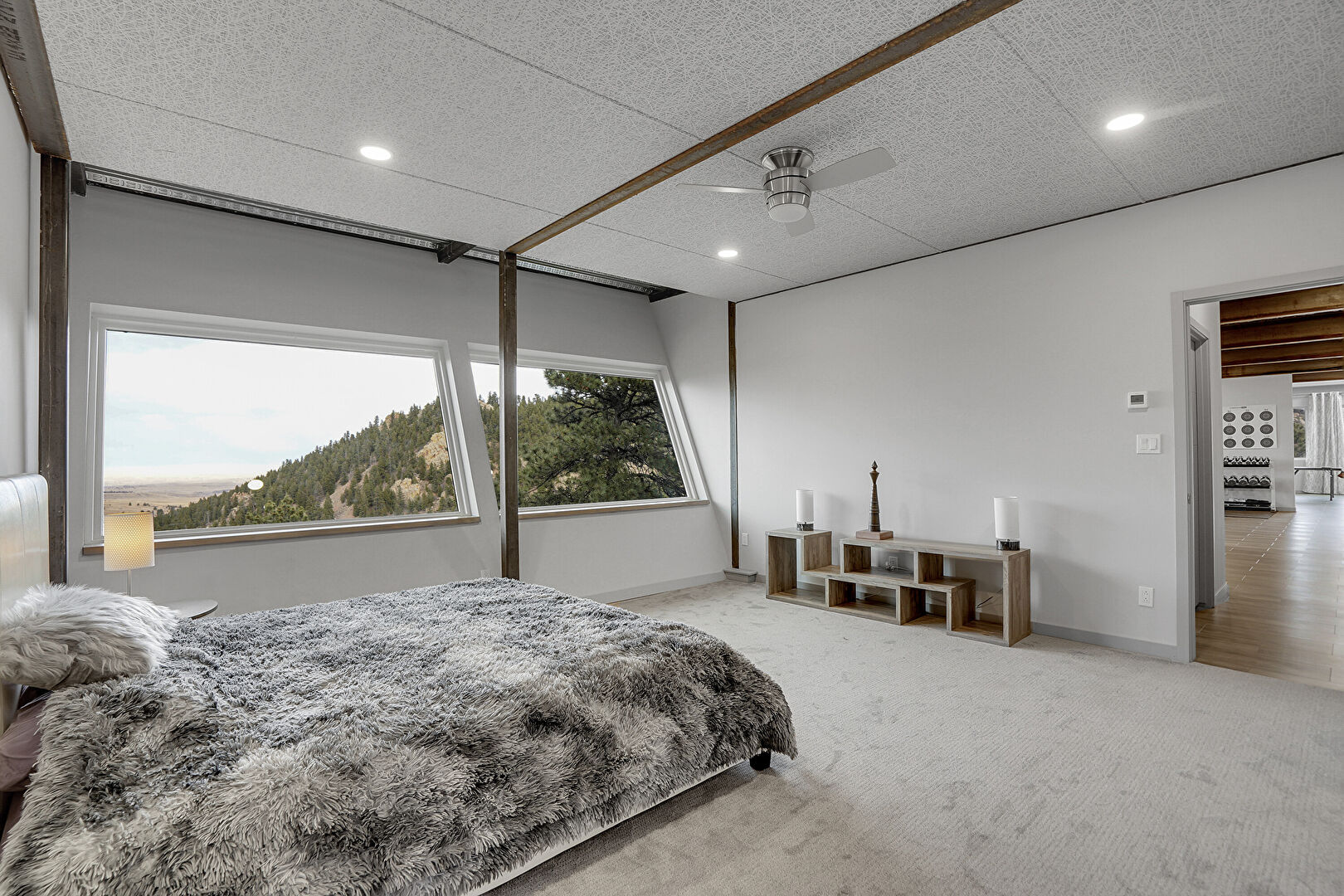 Baseboards Wall, Carpet, Ceiling Fan, Drywall, Mountain View, Natural Light, Recessed Lighting, Sunroom, Tile Floor, Baseboards Wall, Carpet, Natural Light, Woods View