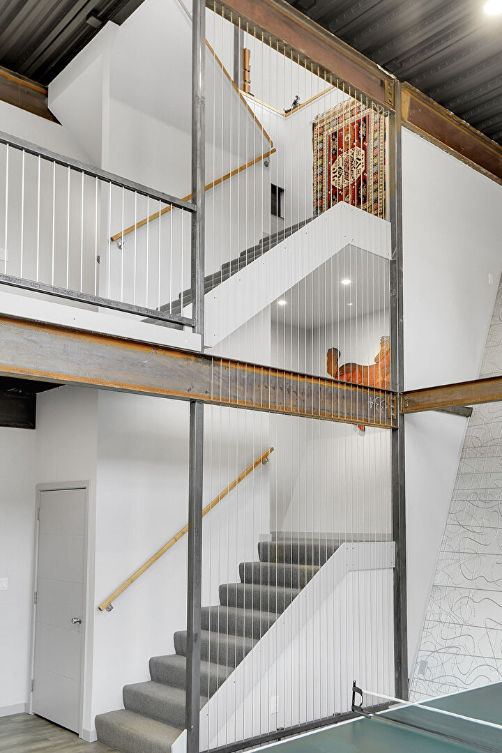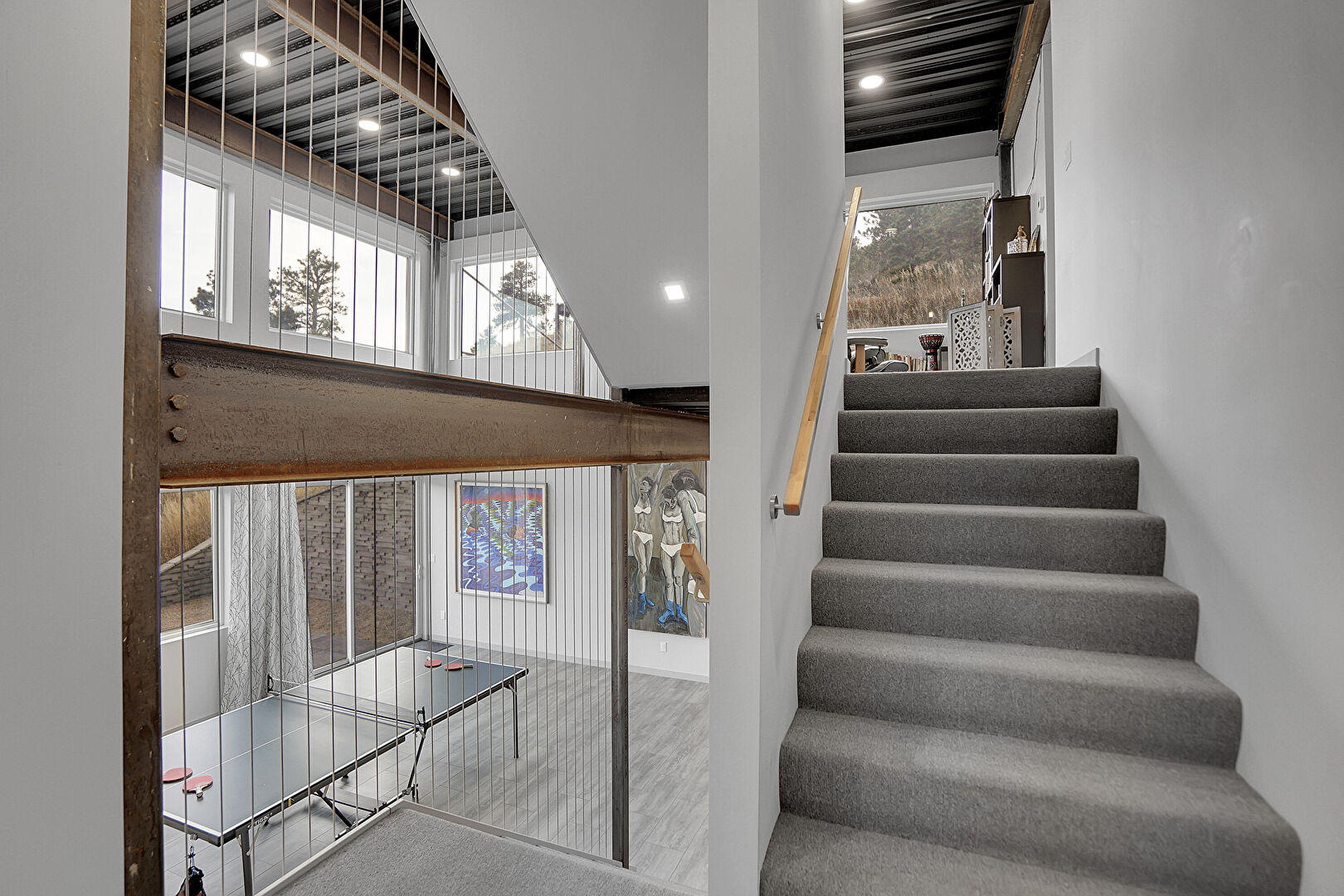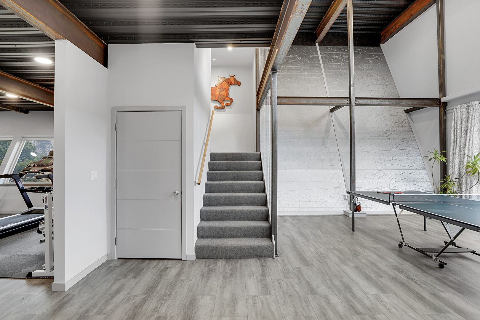 Basement, Carpet, Drywall, High Ceiling, Natural Light, Recessed Lighting, Stairs, Tile Floor, Wood Finish Floor, Baseboards Wall, Drywall, Natural Light, Wood Finish Floor