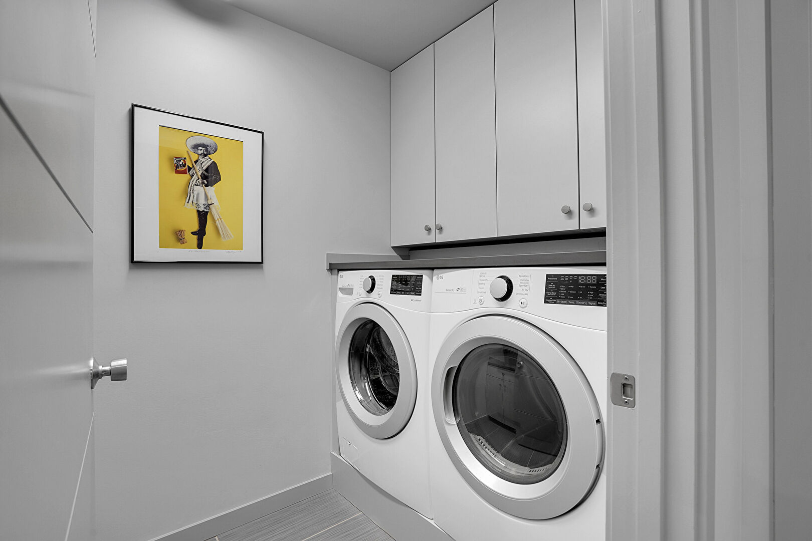 Drywall, Laundry, Tile Floor, Baseboards Wall