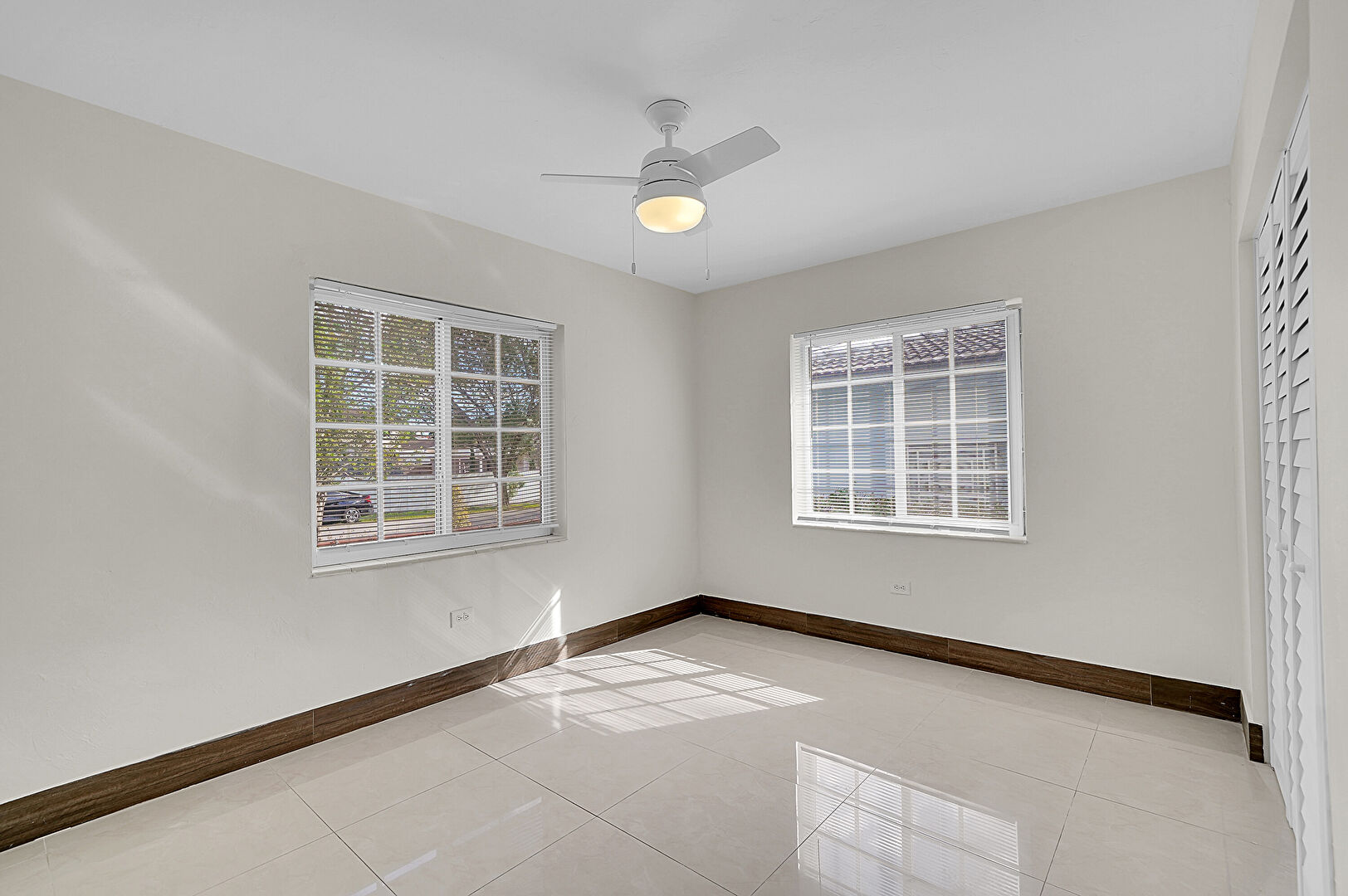 Baseboards Wall, Drywall, Natural Light, Tile Floor, Ceiling Fan