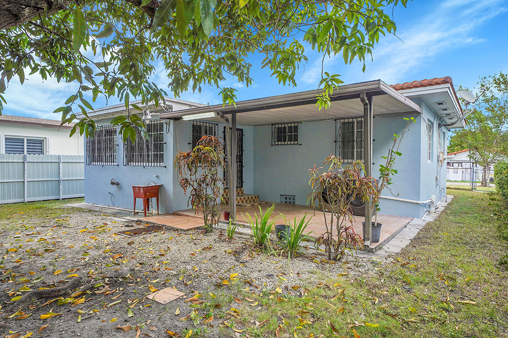 Crawl Space, Driveway, Entry Steps, Fence, Lawn, Porch, Stoop, Stucco Siding, Tile Roof, Awning