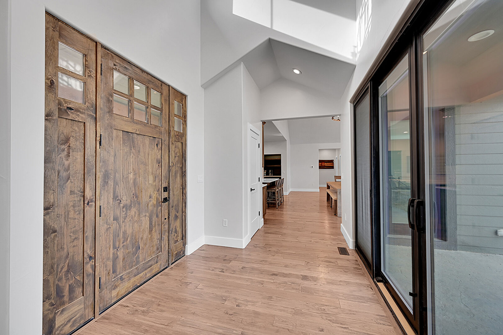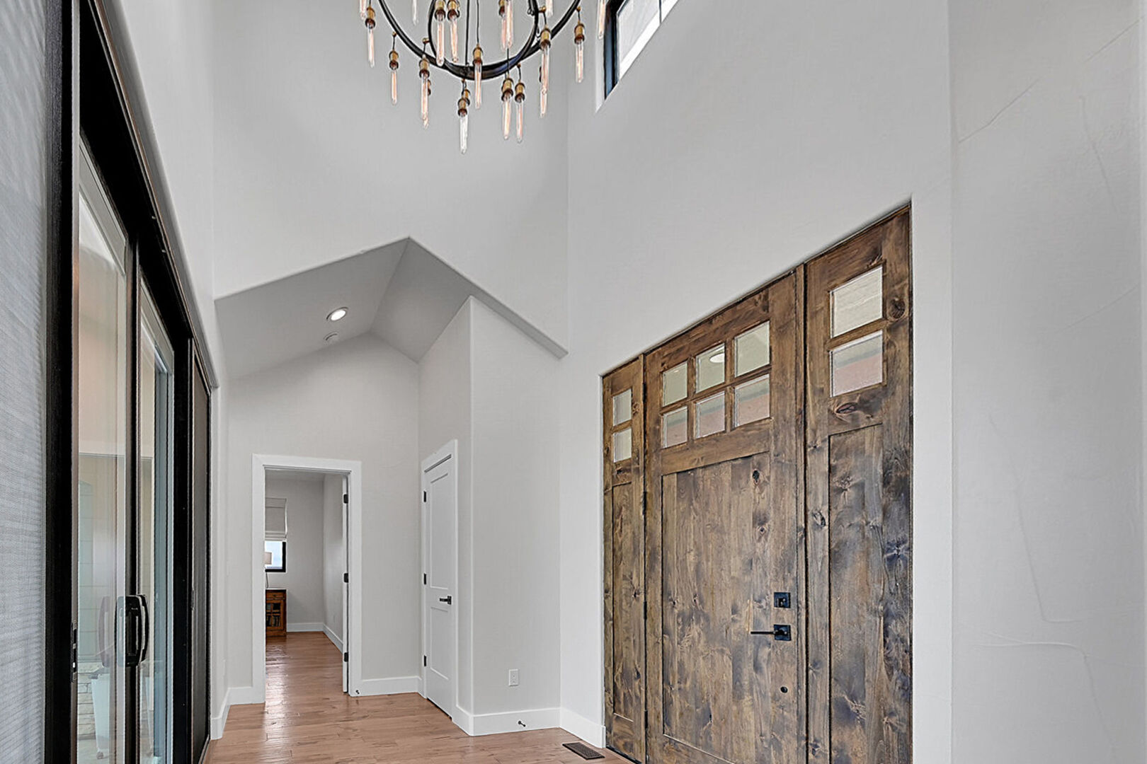 Baseboards Wall, Drywall, High Ceiling, Natural Light, Notable Chandelier, Recessed Lighting, Vaulted Ceiling, Vent, Wood Finish Floor, Drywall, Wood Finish Floor