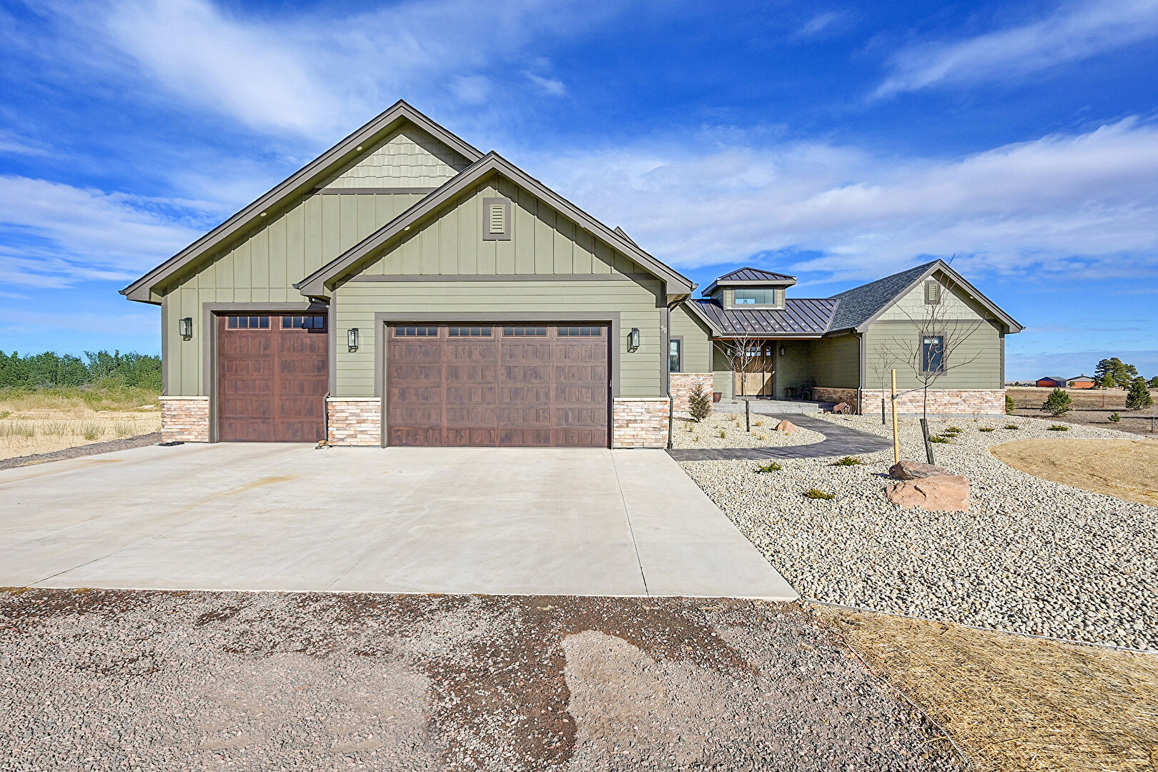 Basement Walk Out, Board Batten Siding, Built In Garage, Central Ac, Desert View, Dormer Roof, Downspout, Driveway, French Doors, Gutters, Horizontal Siding, Lawn, Metal Roof, Mountain View, Patio, Porch, Rural View, Shake Shingle Siding, Shingle Roof, Standing Seam Roof, Stone Siding, Trampoline, Vertical Siding, Board Batten Siding, Desert View, Lawn, Metal Roof, Patio, Rural View, Shake Shingle Siding, Trampoline