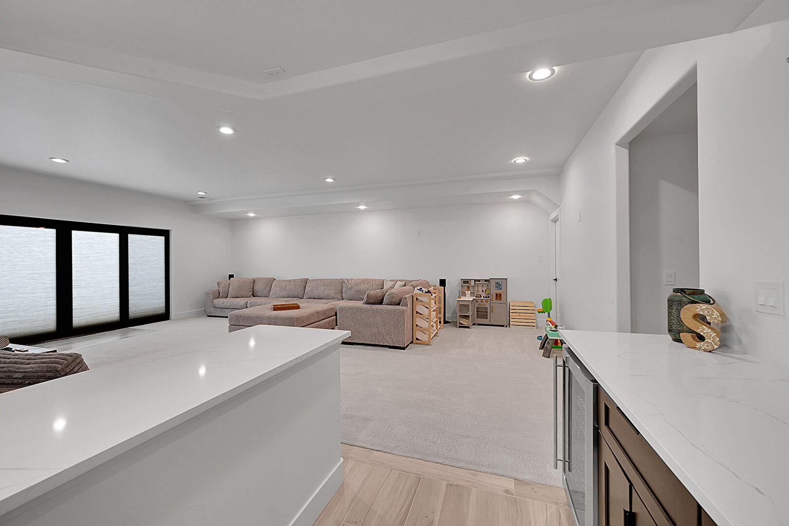 Drywall, Natural Light, Recessed Lighting, Vinyl Floor, Baseboards Wall