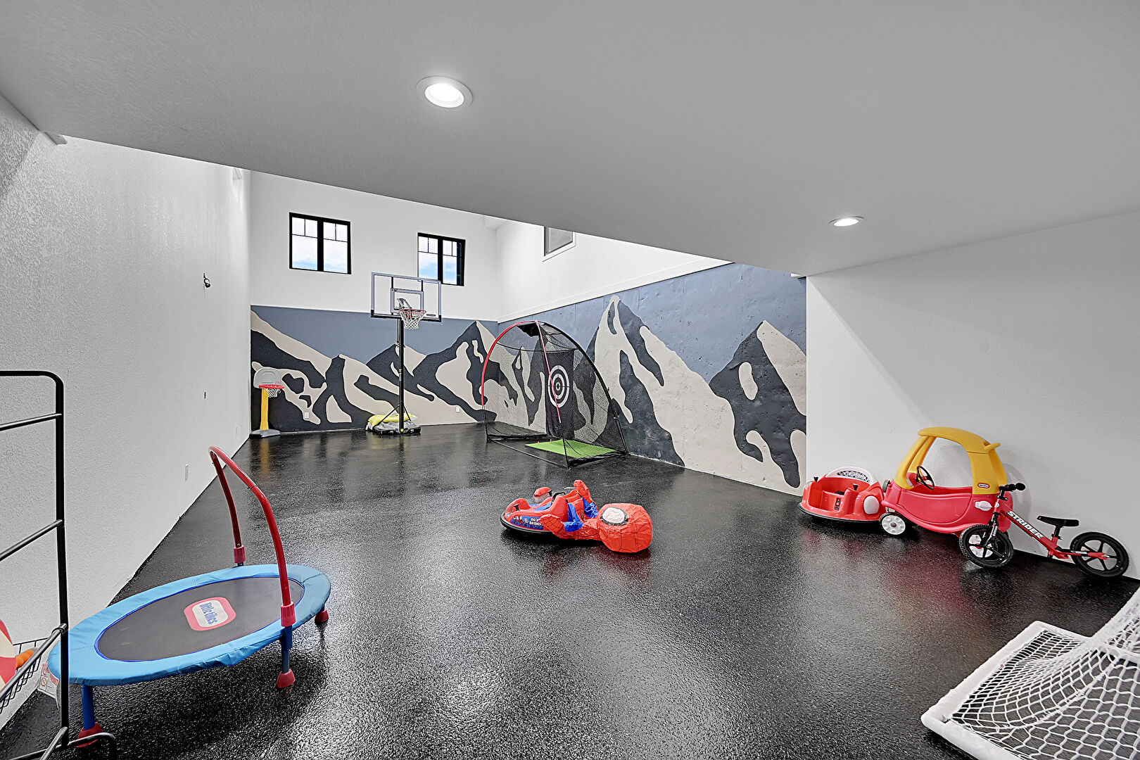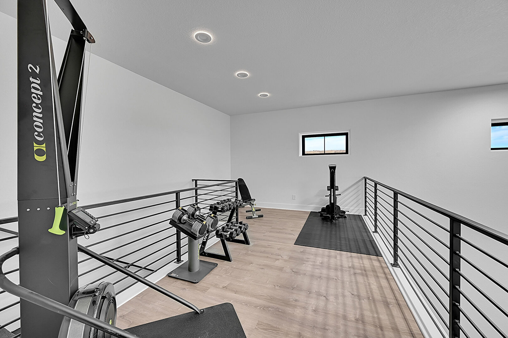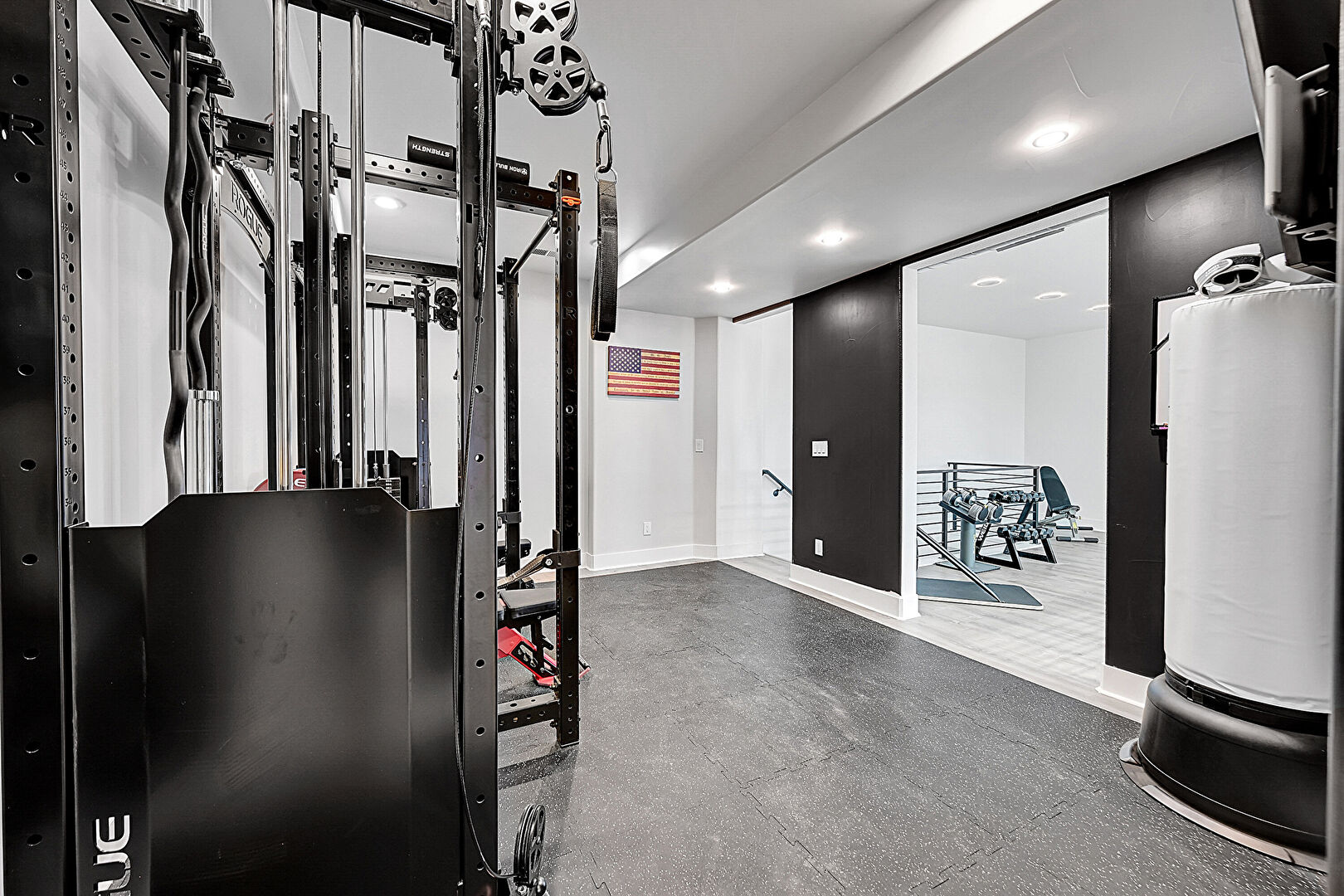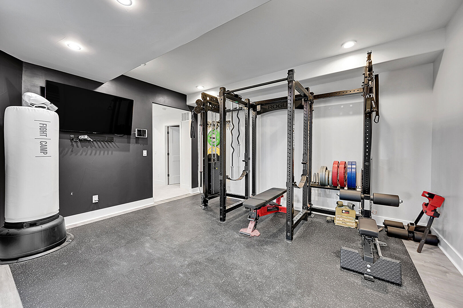 Baseboards Wall, Drywall, Rubber Floor, Recessed Lighting