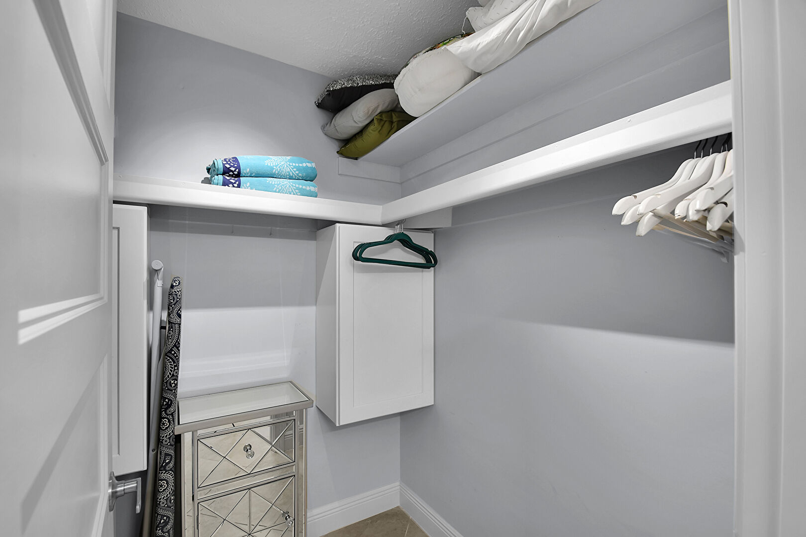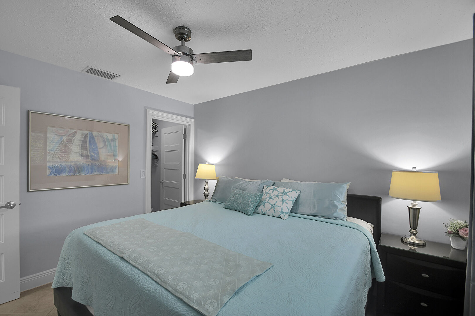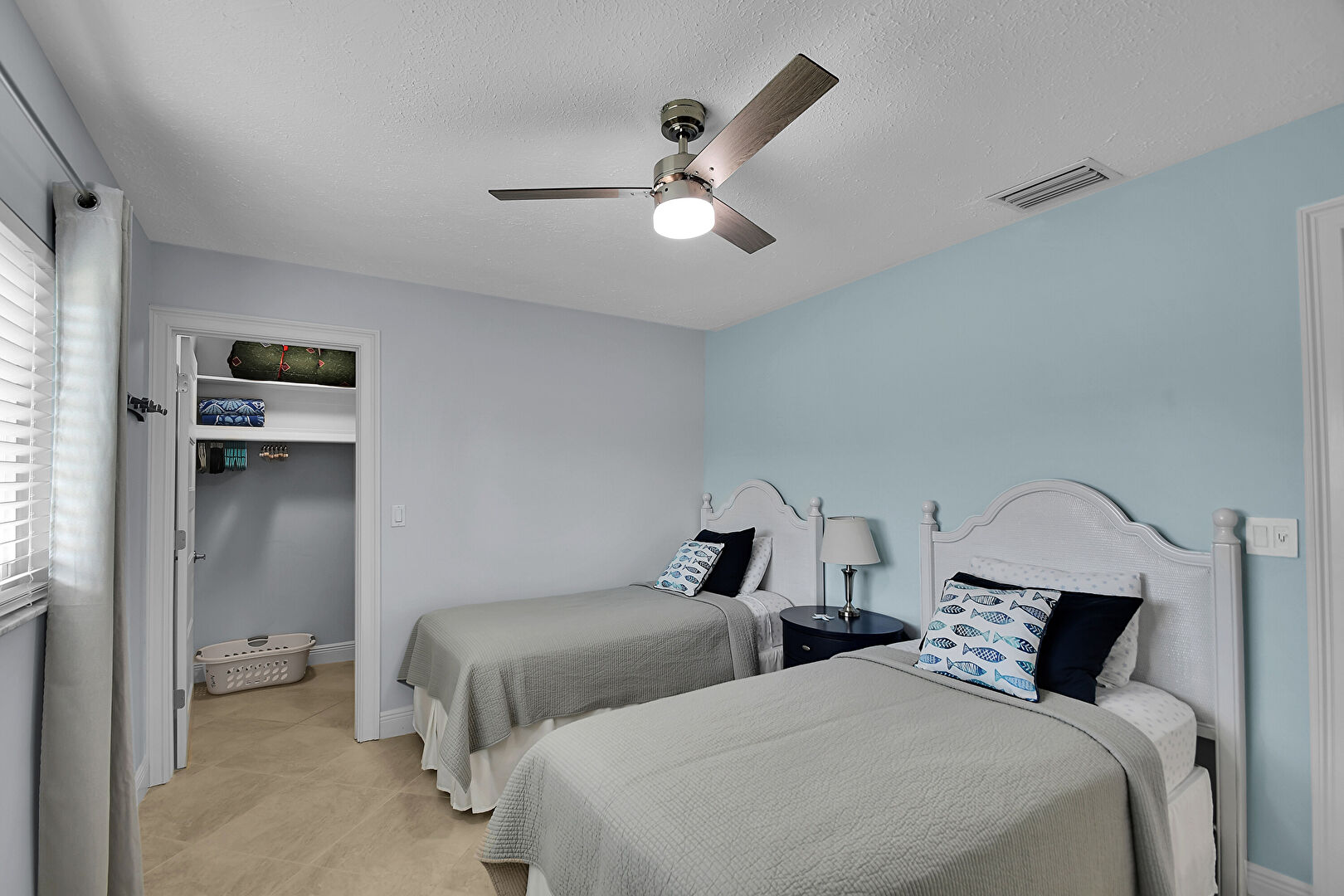Baseboards Wall, Ceiling Fan, Drywall, Natural Light, Textured Ceiling, Tile Floor, Vent, Baseboards Wall, Drywall, Textured Ceiling, Walk In Closet