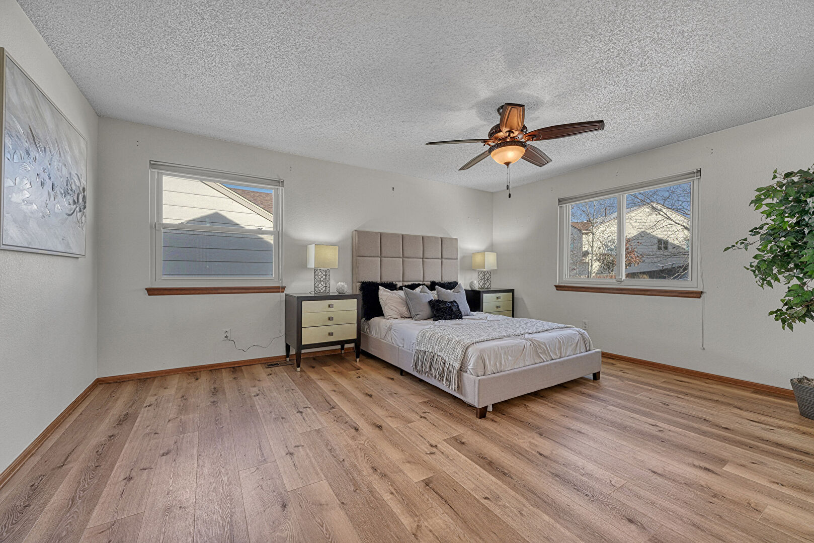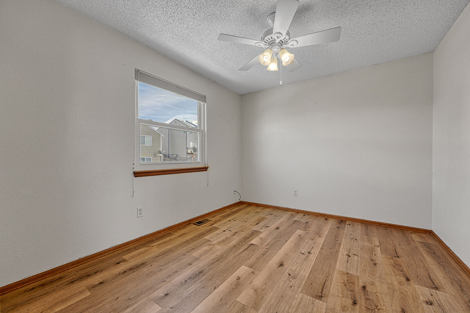 Baseboards Wall, Ceiling Fan, Drywall, Natural Light, Textured Ceiling, Vent, Wood Finish Floor, Ceiling Fan, Textured Ceiling, Wood Finish Floor